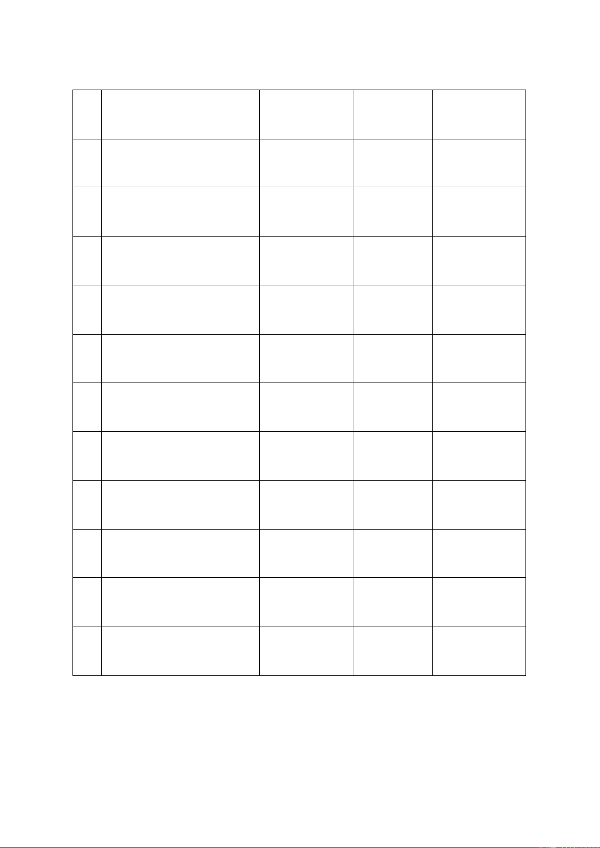 lOMoAR cPSD| 47708777 TT Họ và tên MSSV Đơn vị Nhiệm vụ 1 Lê Ngọc Bảo Trân K194101491 K194102C Nhóm trưởng 2 Bùi Thị Thu Thảo K194101485 K194102C Thành viên 3 Phạm Ngọc Yến Trang K194101490 K194102C Thành viên 4 Lê Thùy Trang K194101489 K194102C Thành viên 5 Vũ Thị Như Quỳnh K194101484 K194102C Thành viên 6 Nguyễn Thị Mỹ Duyên K194101501 K194102C Thành viên 7 Mai Linh Uyên Nhi K194101508 K194102C Thành viên 8 Nguyễn Ái Ngân K194070982 K19407C Thành viên 9 Huỳnh Nguyễn Bảo Châu K194101739 K20410C Thành viên 10 Nguyễn Anh Tú K194101494 K194102C Thành viên 11 Phạm Quốc Trung K194101492 K194102C Thành viên MỤC LỤC