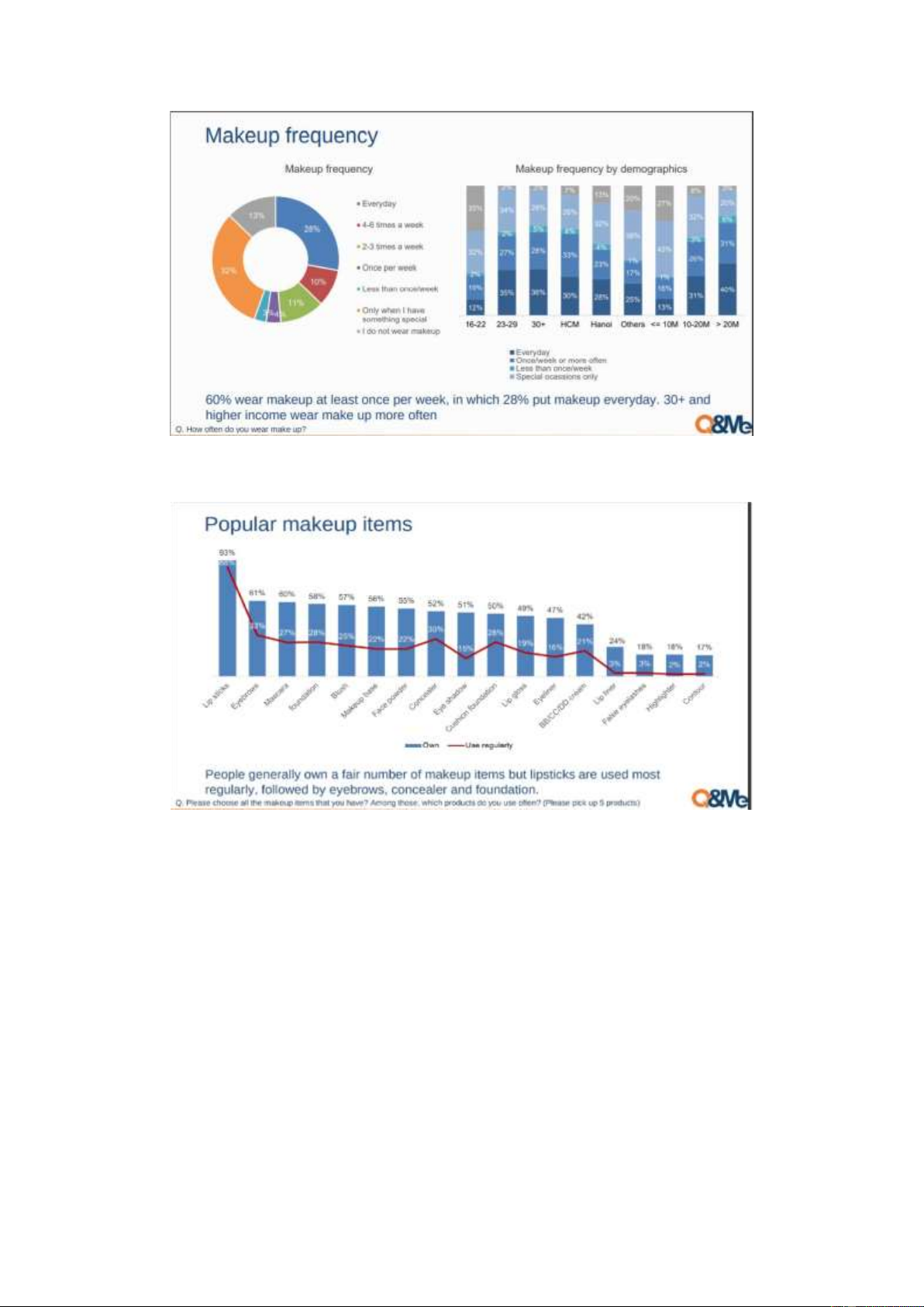 thời, số người trang điểm thường xuyên (ít nhất 4 lần/tuần) cũng tăng từ 35% lên 39%. lOMoAR cPSD| 47708777