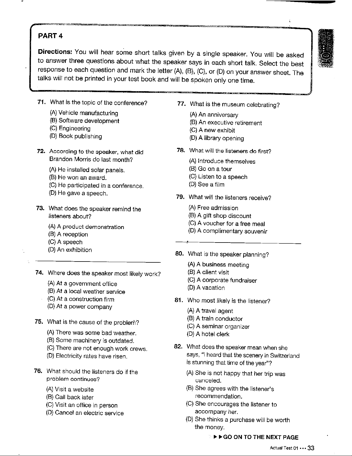 Actual Test 1 | Tài liệu Tiếng Anh. Tài liệu giúp bạn tham khảo, ôn tập và đạt kết quả cao. Mời đọc đón xem!