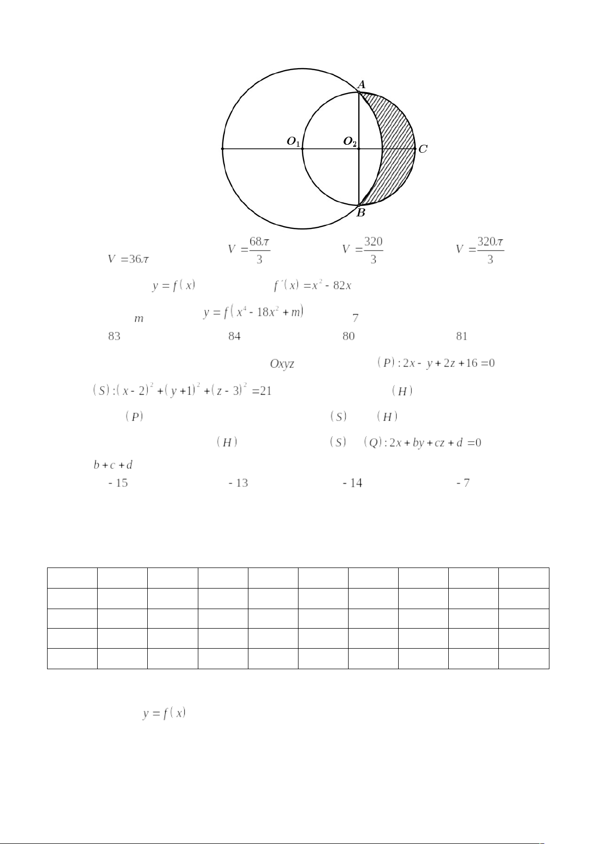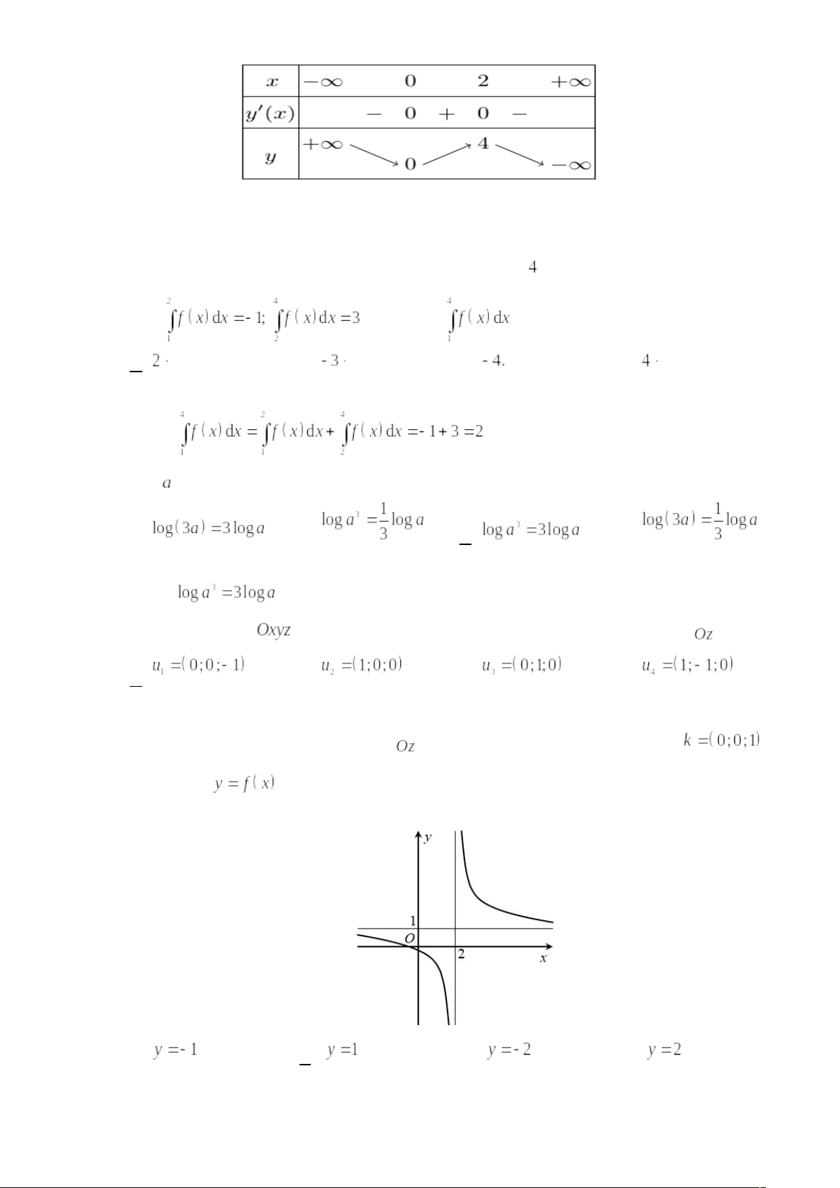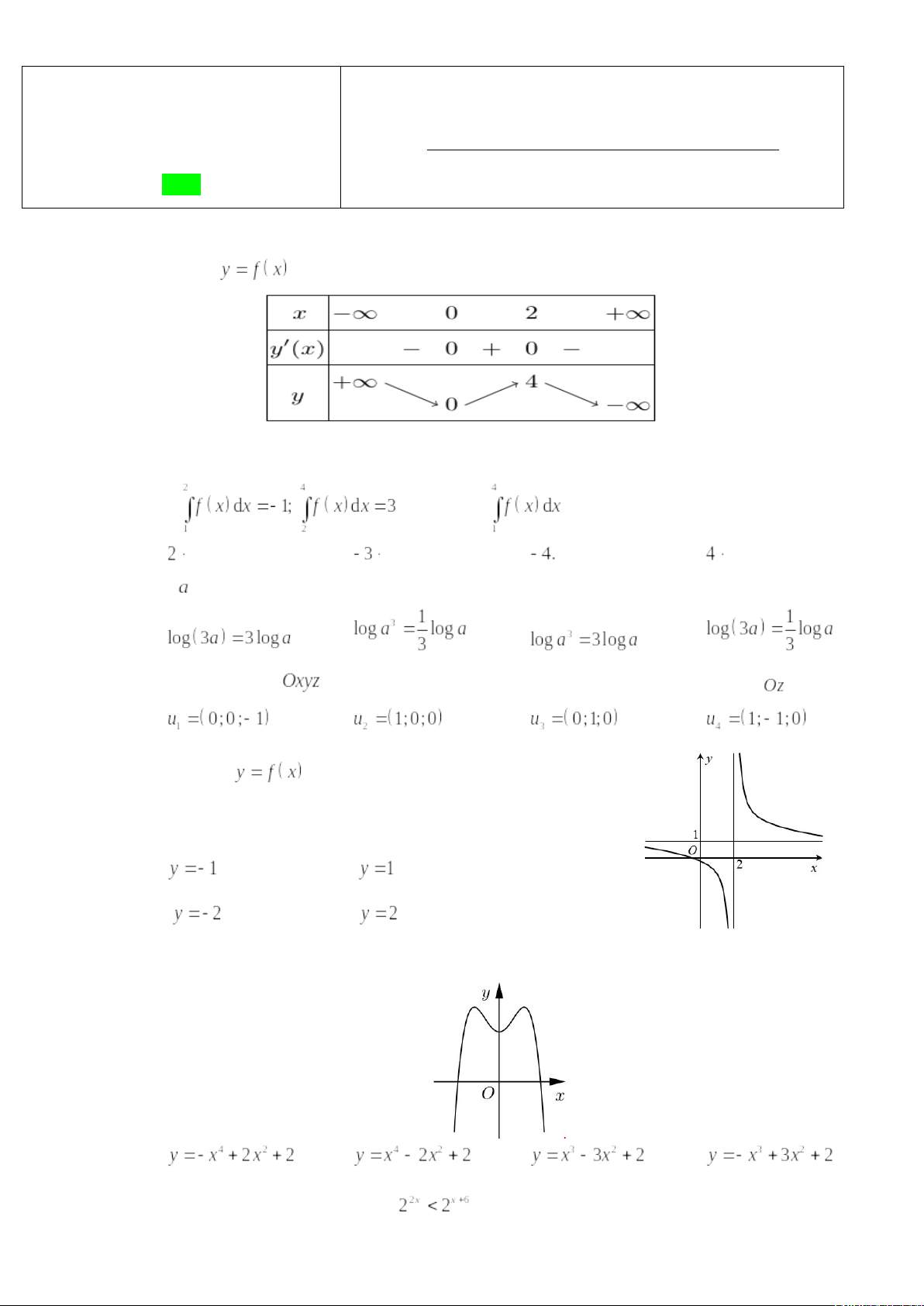 Câu 1: Cho hàm số có bảng biến thiên như sau