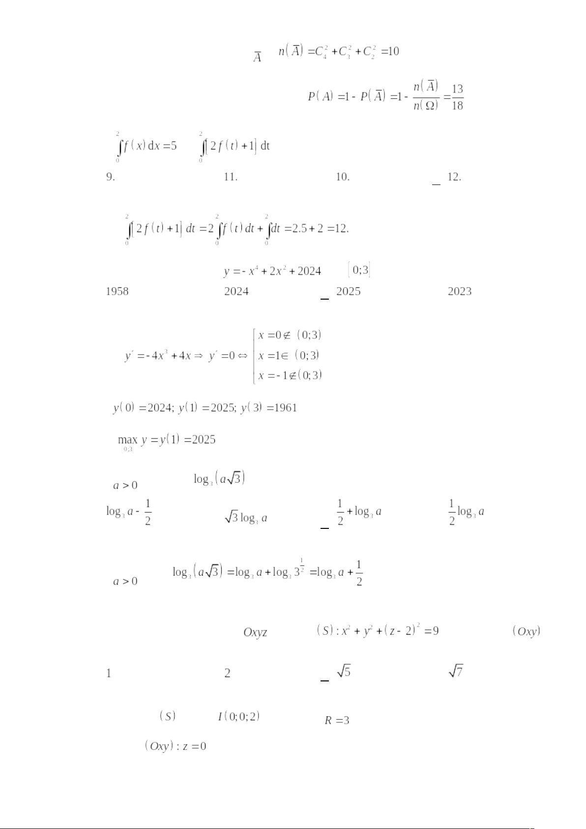 Câu 35: Giá trị lớn nhất của hàm số trên