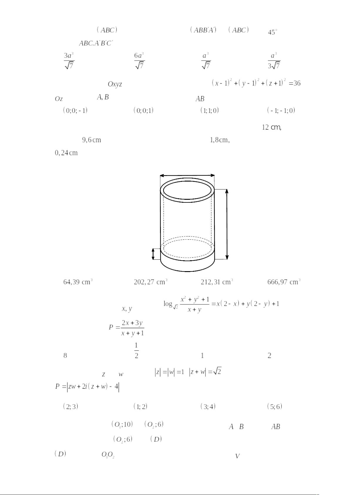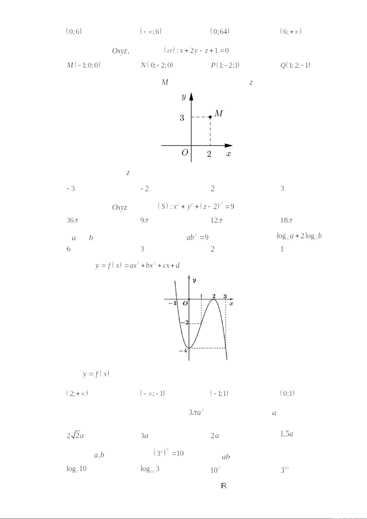 Câu 37: Trong không gian với hệ tọa độ , mặt cầu