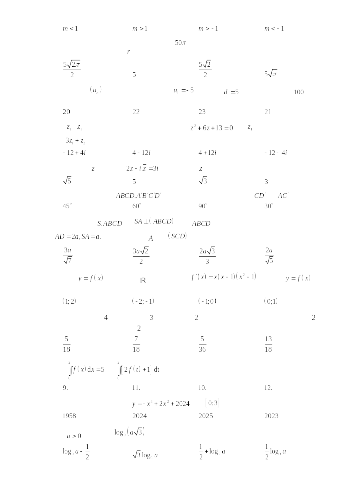 Câu 40: Gọi là tập tất cả các giá trị nguyên của tham số