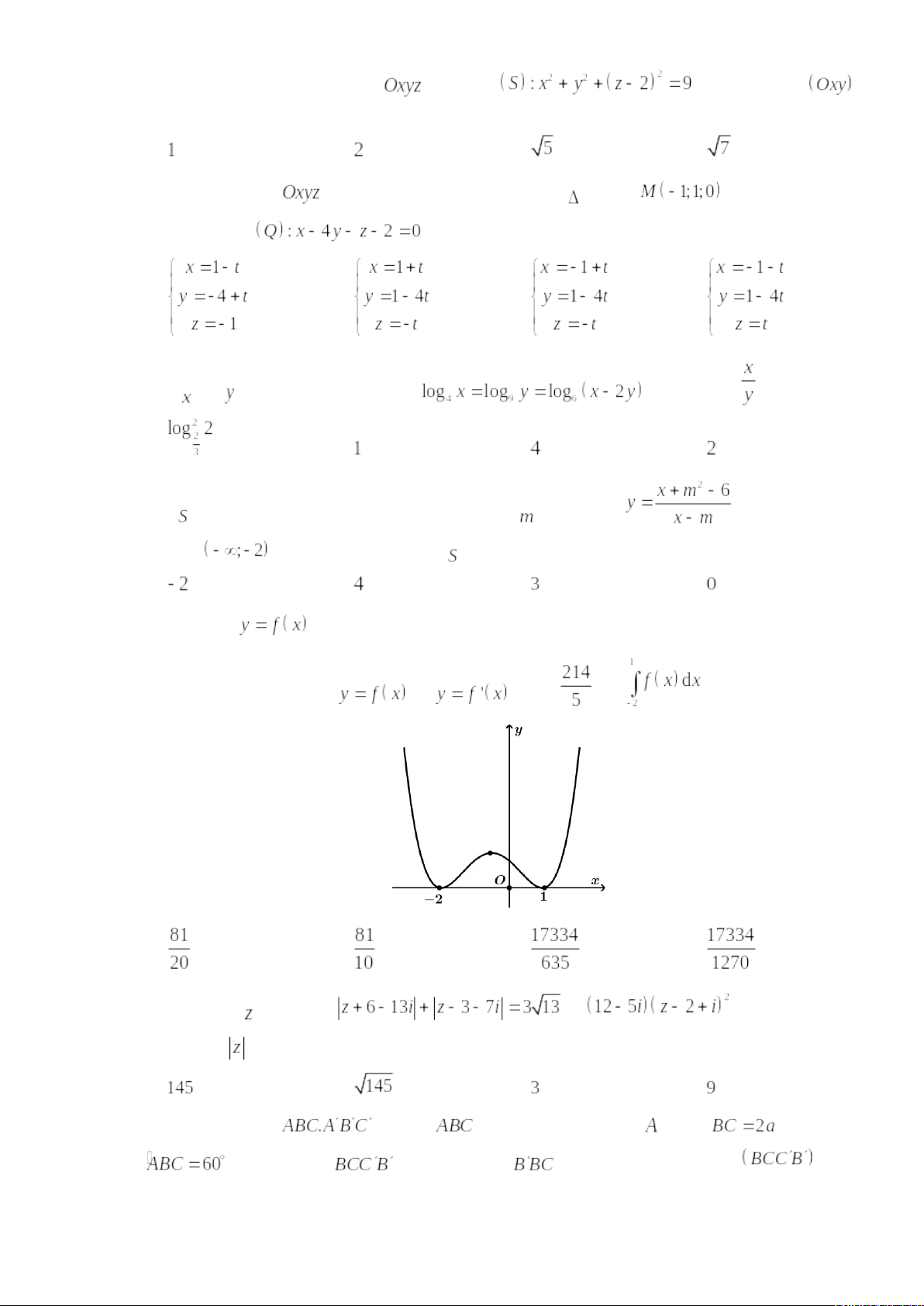 Câu 6: Đường cong trong hình vẽ bên là đồ thị của hàm số nào dưới đây?