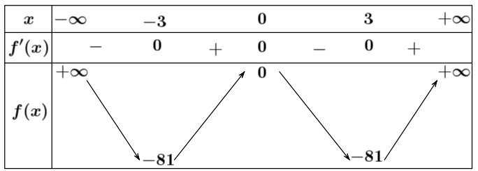 . Do đó dựa vào bảng biến thiên ta có