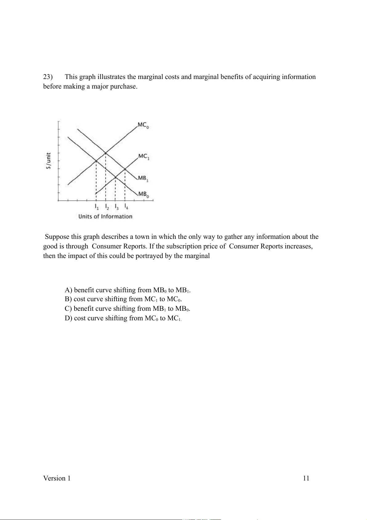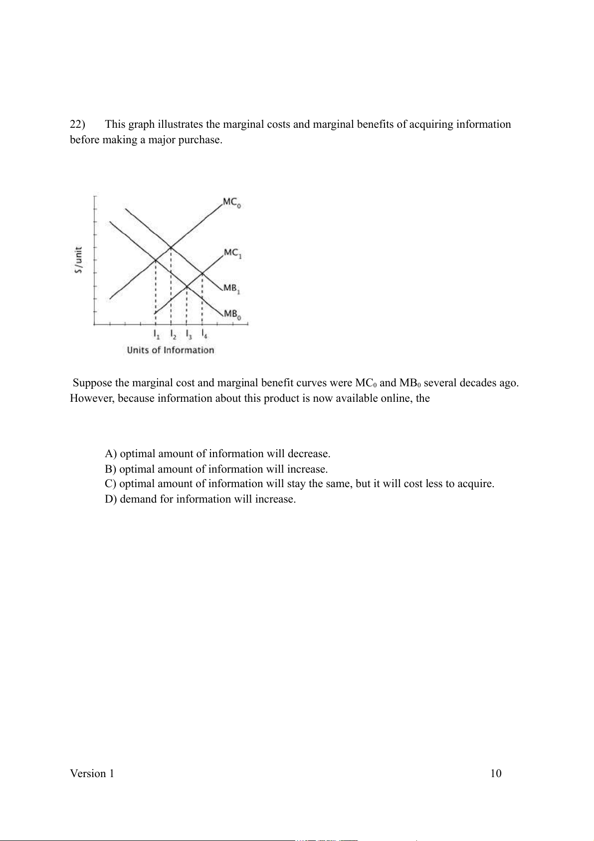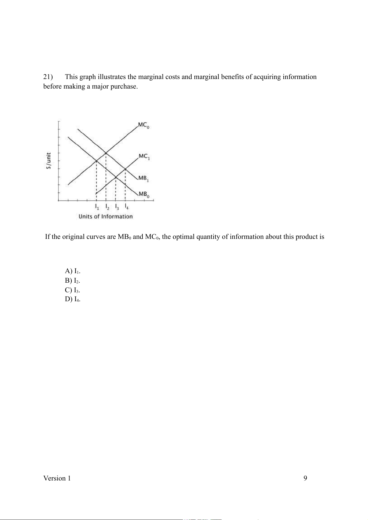 , the optimal quantity of information about this product is 0 A) I .1 B) I .2 C) I .3 D) I .4 Version 1 9 22)