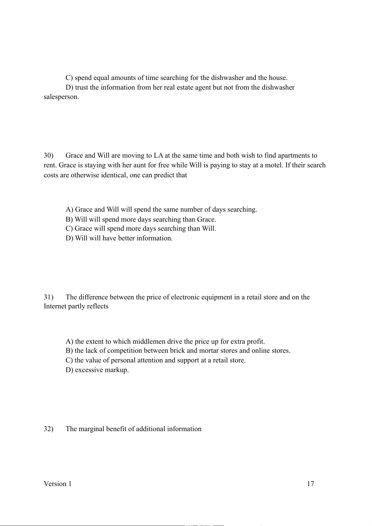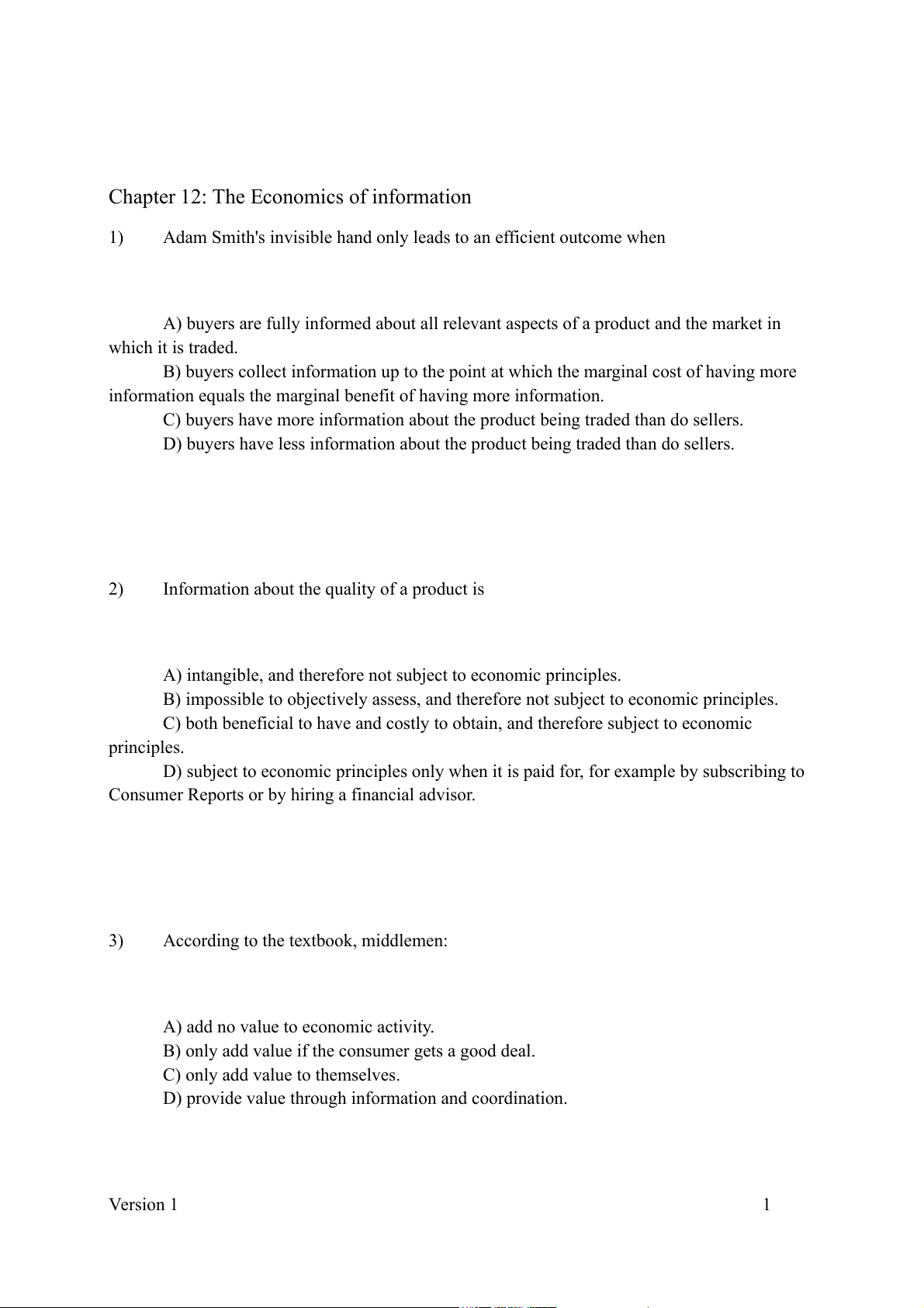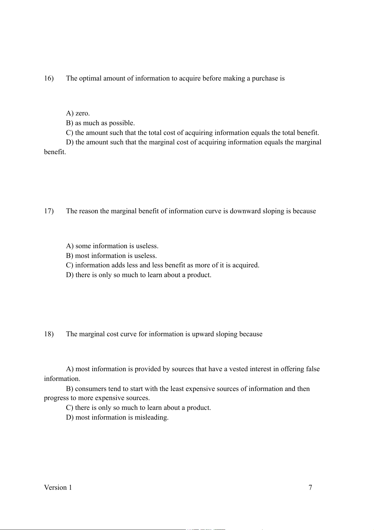 , the optimal quantity of information about this product is 0 A) I .1 B) I .2 C) I .3 D) I .4 Version 1 9 22)