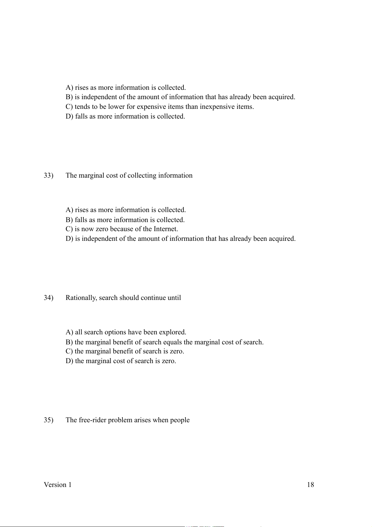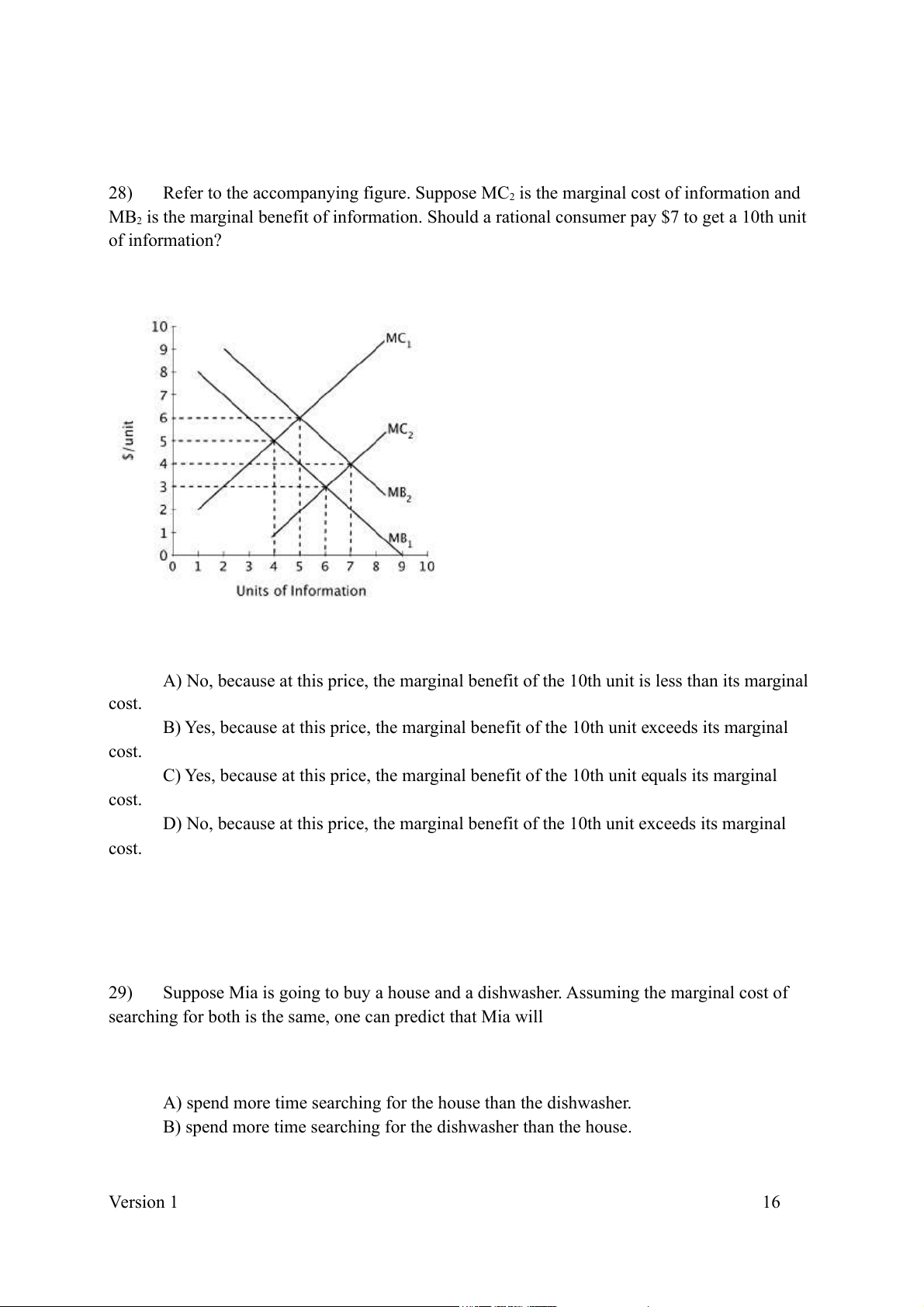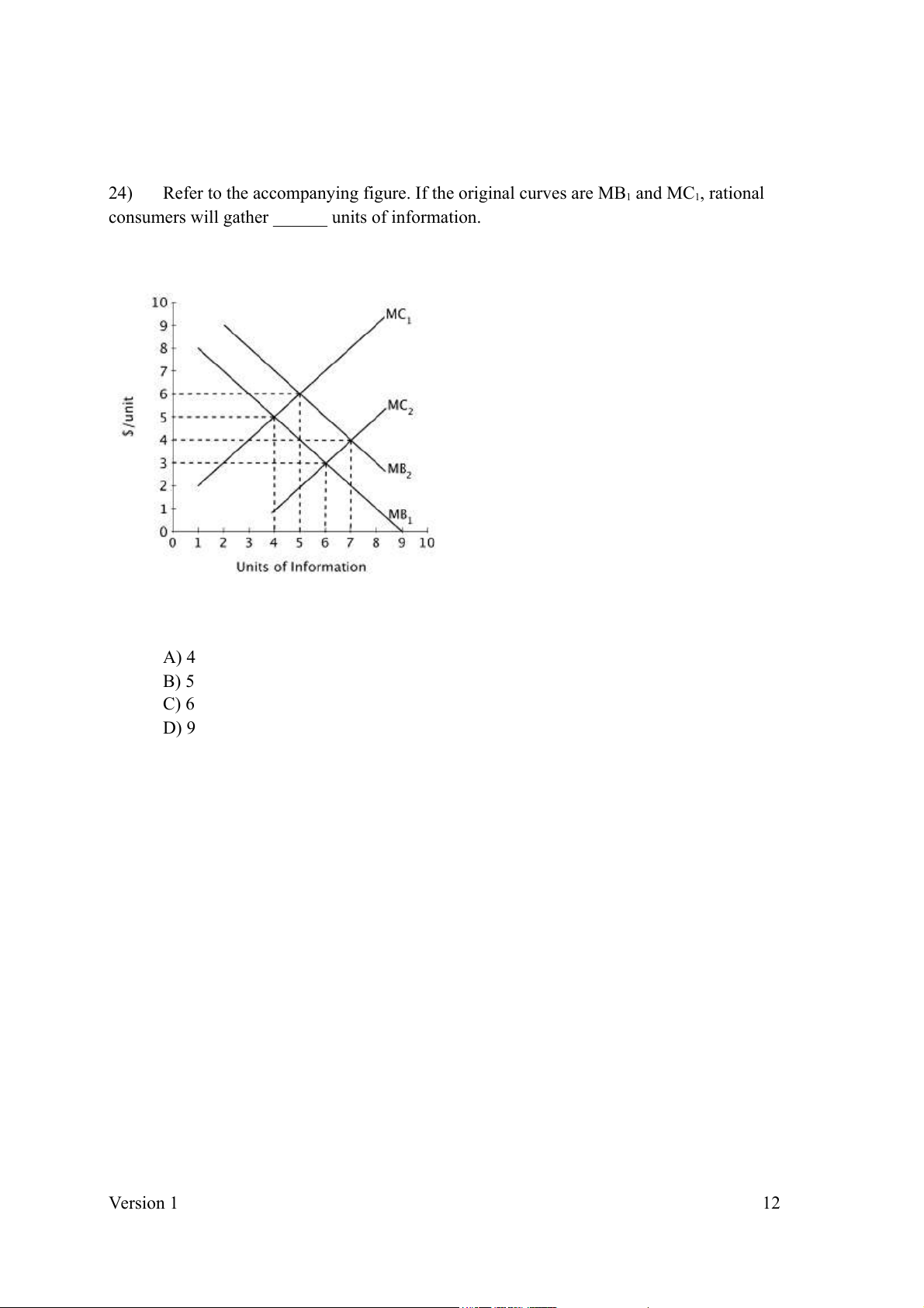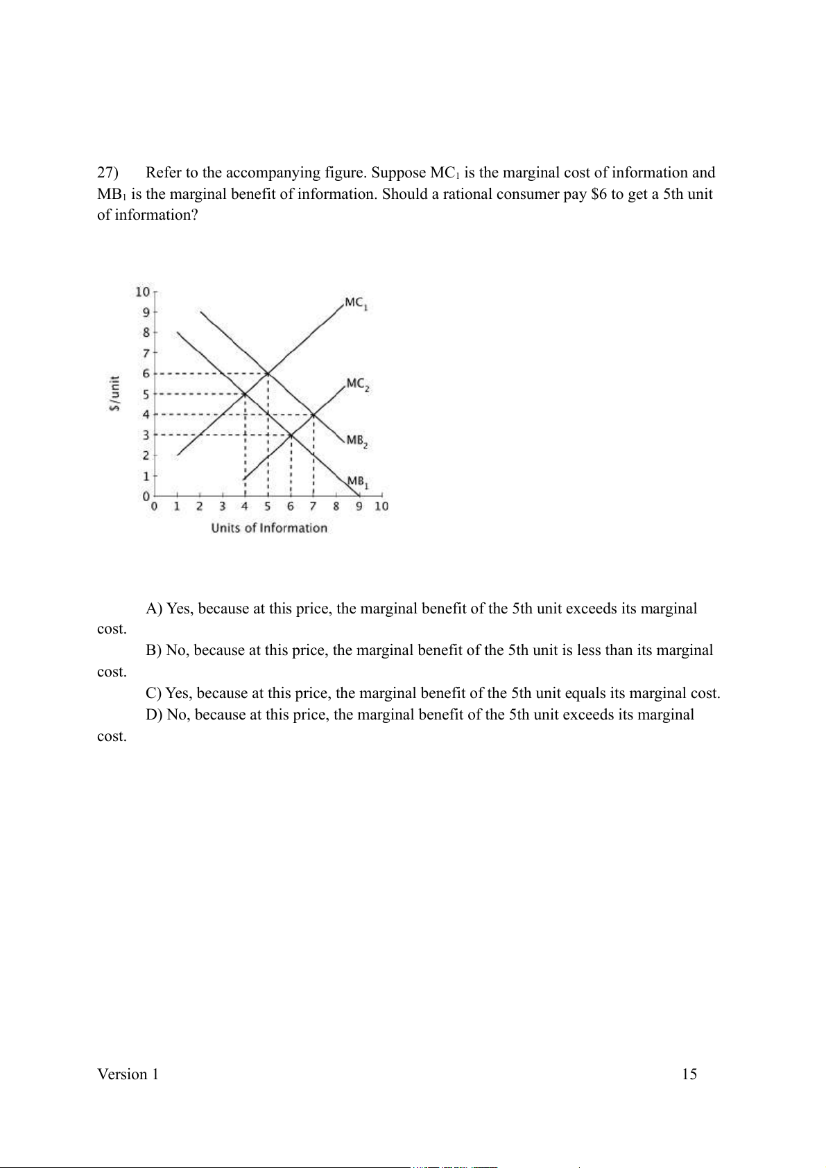 information is ______ its marginal cost. A) 4; equal to B) 4; more than C) 5; more than D) 5; equal to Version 1 14 27)