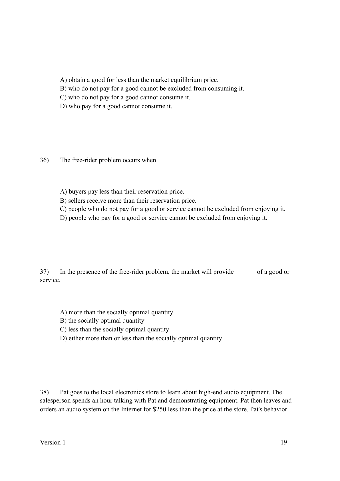 D) people who pay for a good or service cannot be excluded from enjoying it. 37)