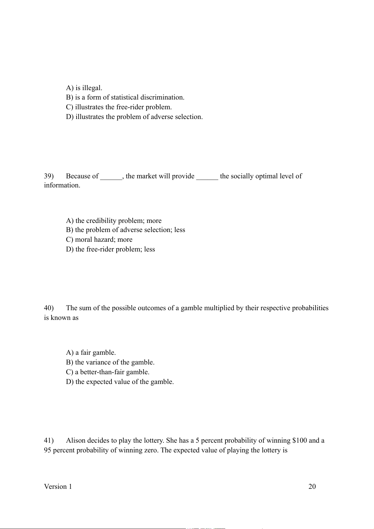 95 percent probability of winning zero. The expected value of playing the lottery is Version 1 20