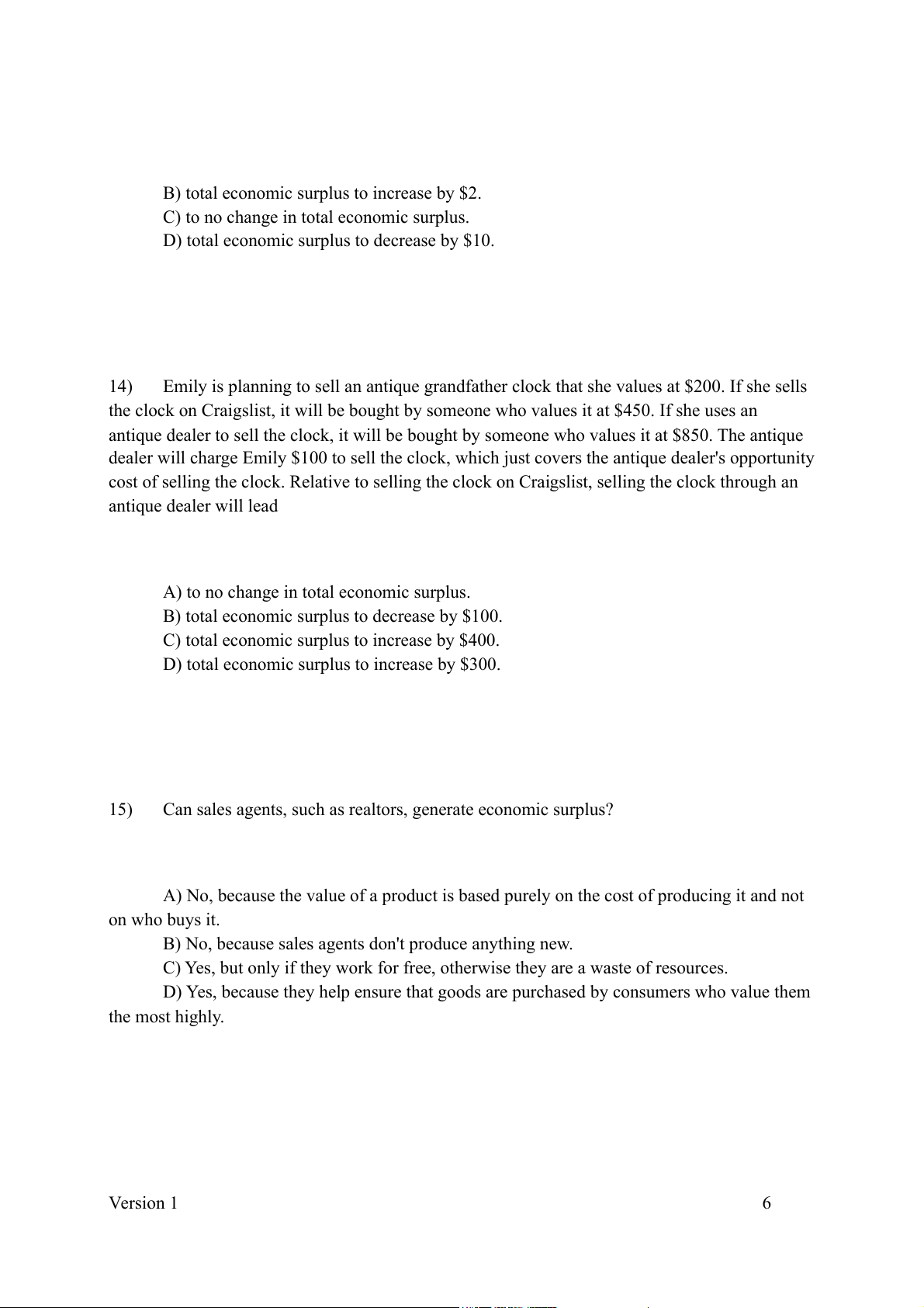 D) Yes, using a realtor increases total economic surplus by $10,000. Version 1 3 9)
