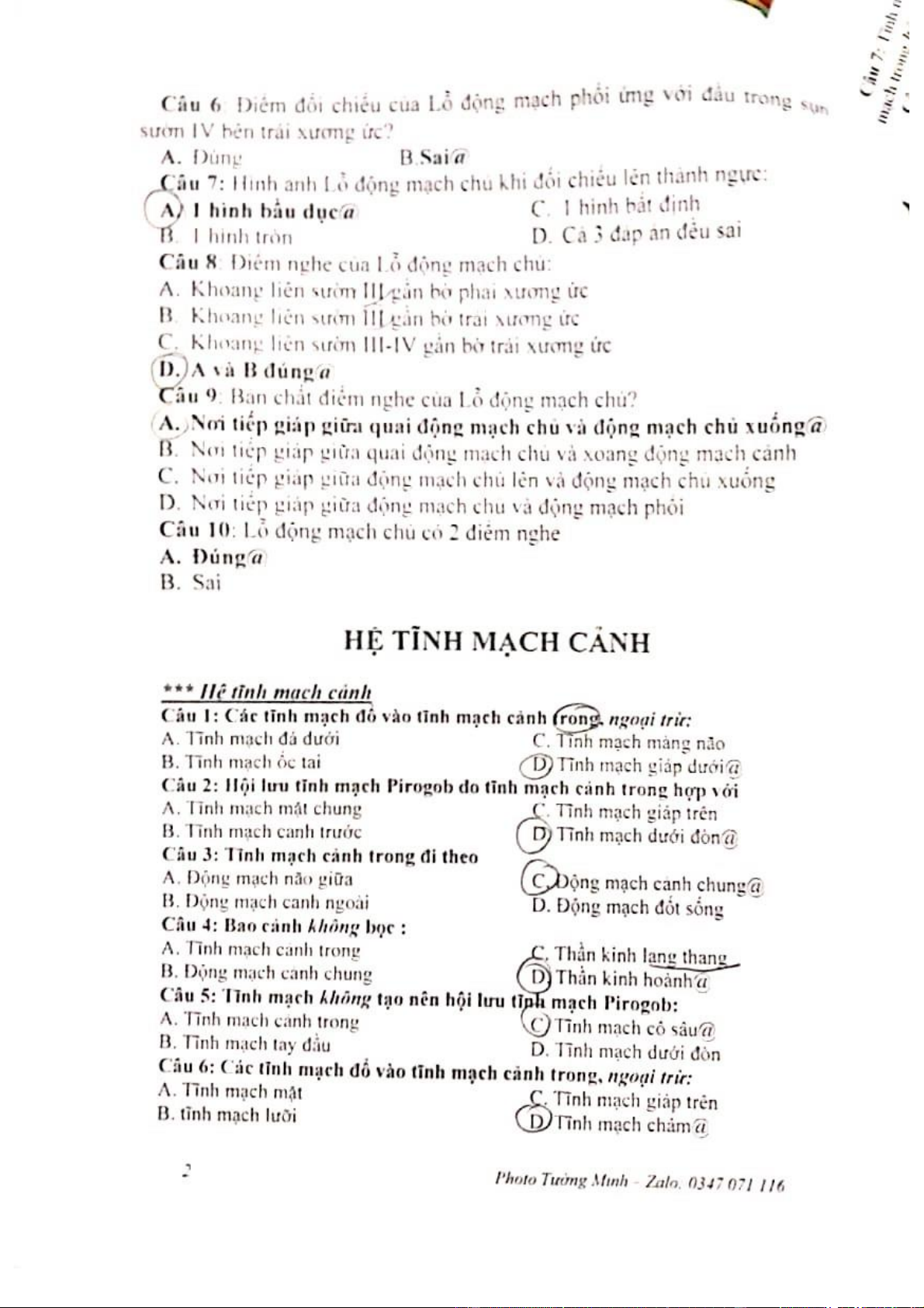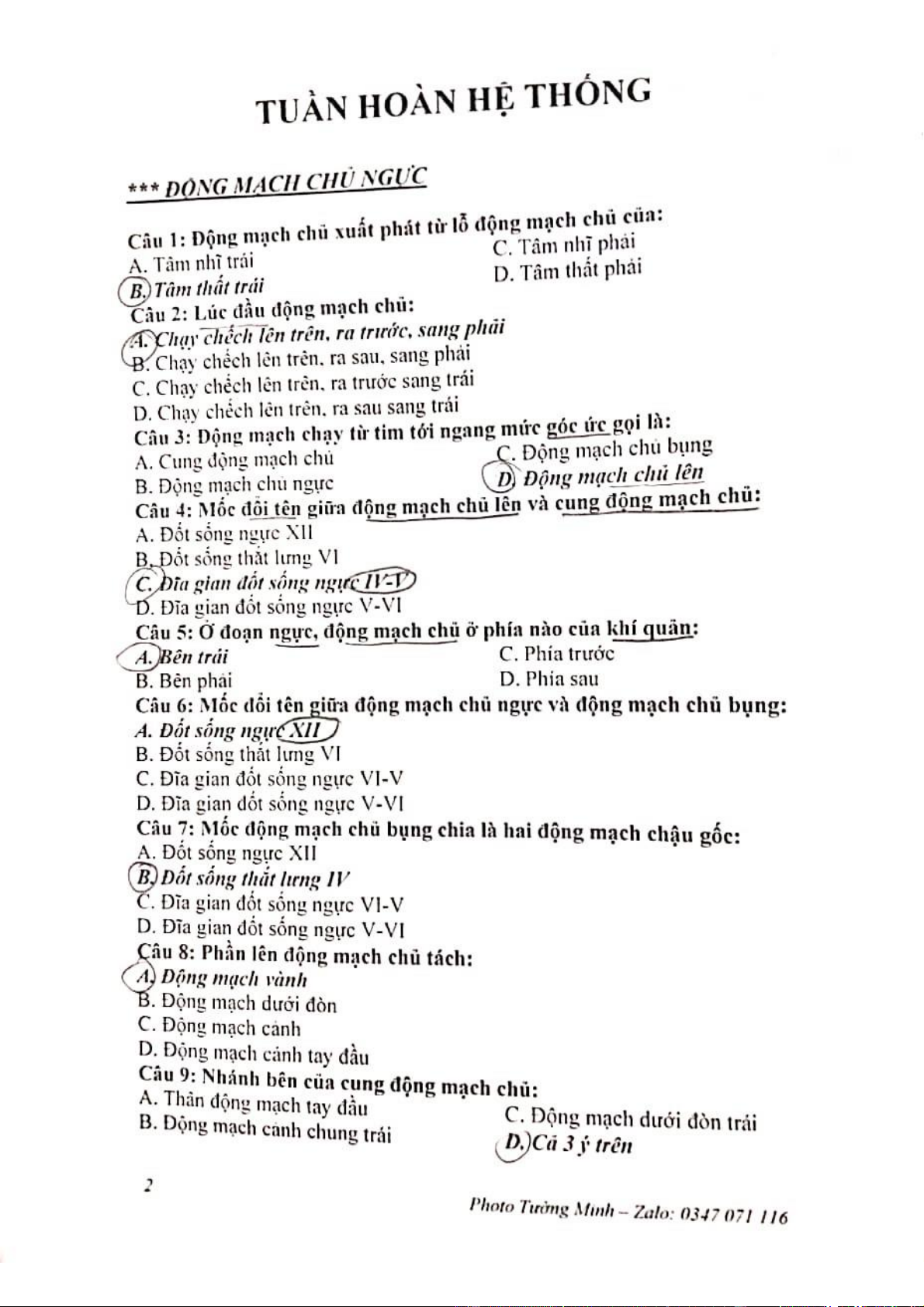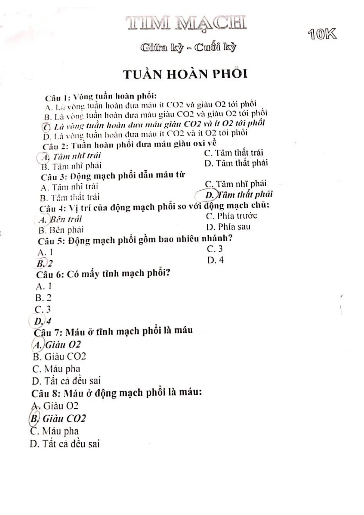 Trắc Nghiệm Hở và Hẹp Van ĐMC môn Module tim mạch | Trường Đại Học Y Dược Thái Bình
