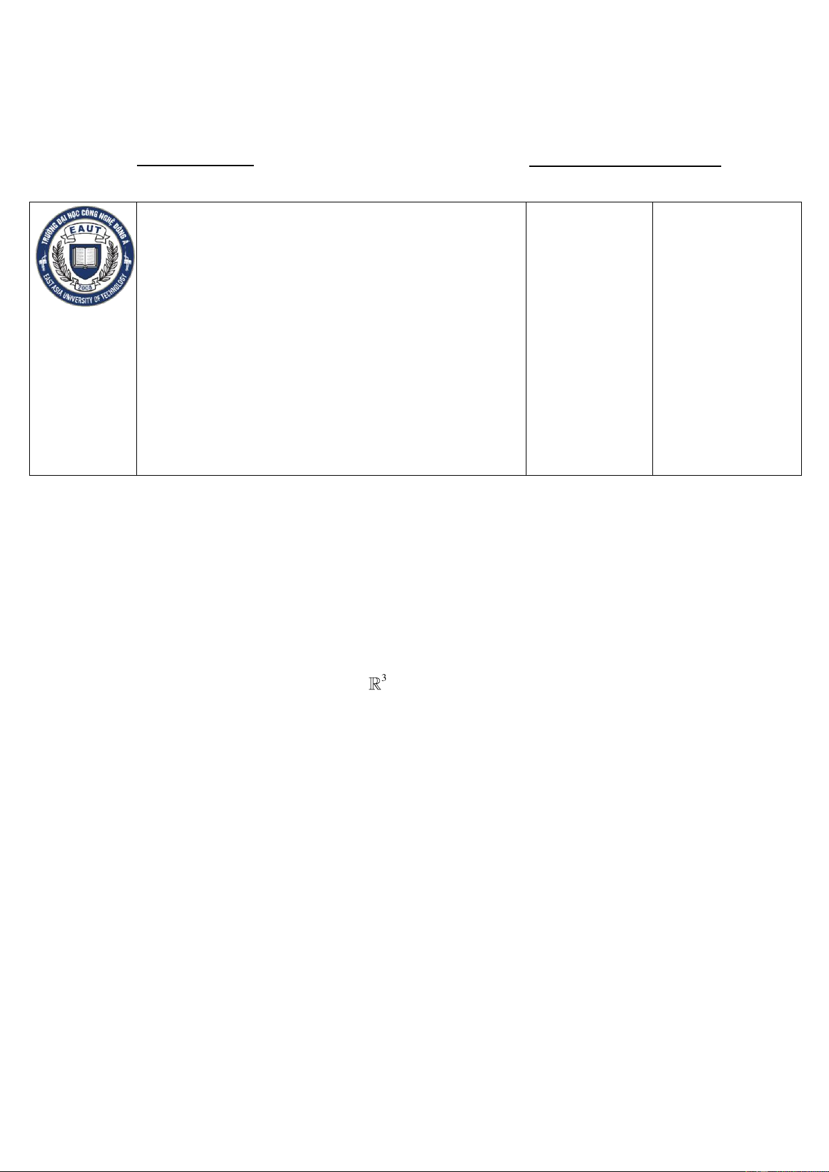 Tên học phần: Đại Số Mã học phần: MI1212