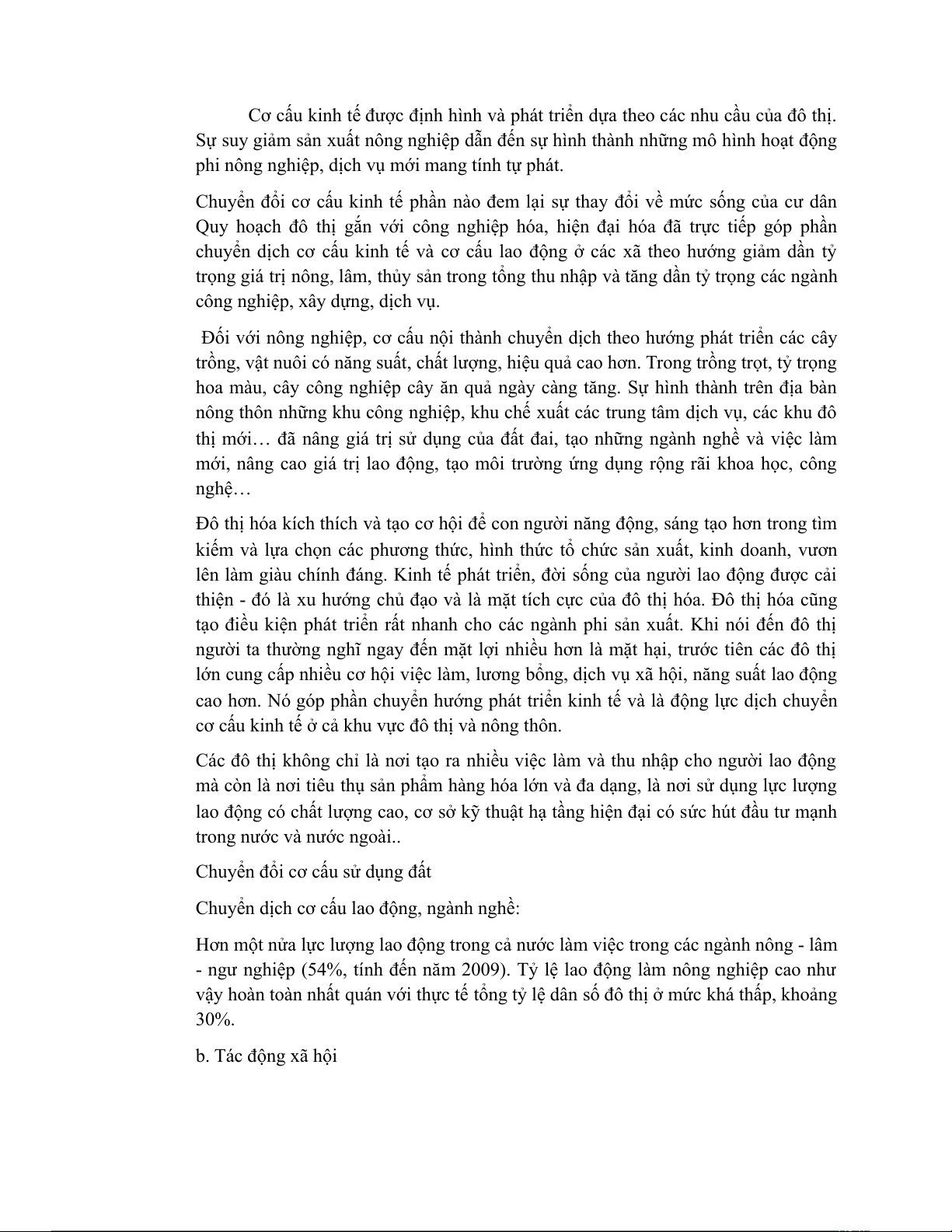 vậy hoàn toàn nhất quán với thực tế tổng tỷ lệ dân số đô thị ở mức khá thấp, khoảng 30%. b. Tác động xã hội