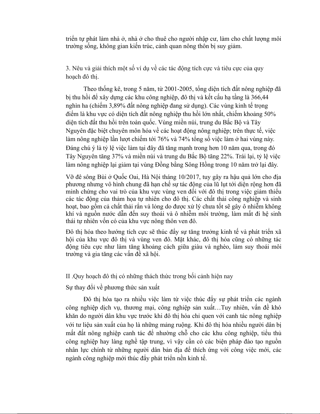 II .Quy hoạch đô thị có những thách thức nào trong bối cảnh hiện nay? Hãy nêu và