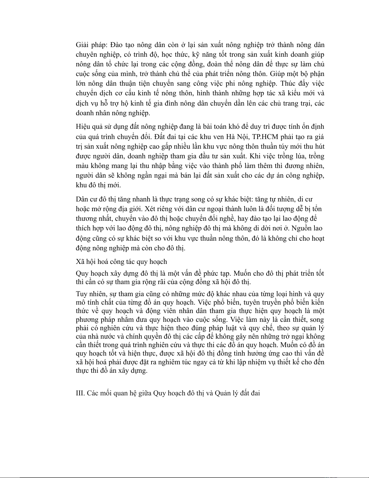 III.Trình bày các mối quan hệ giữa Quy hoạch đô thị và Quản lý đất đai