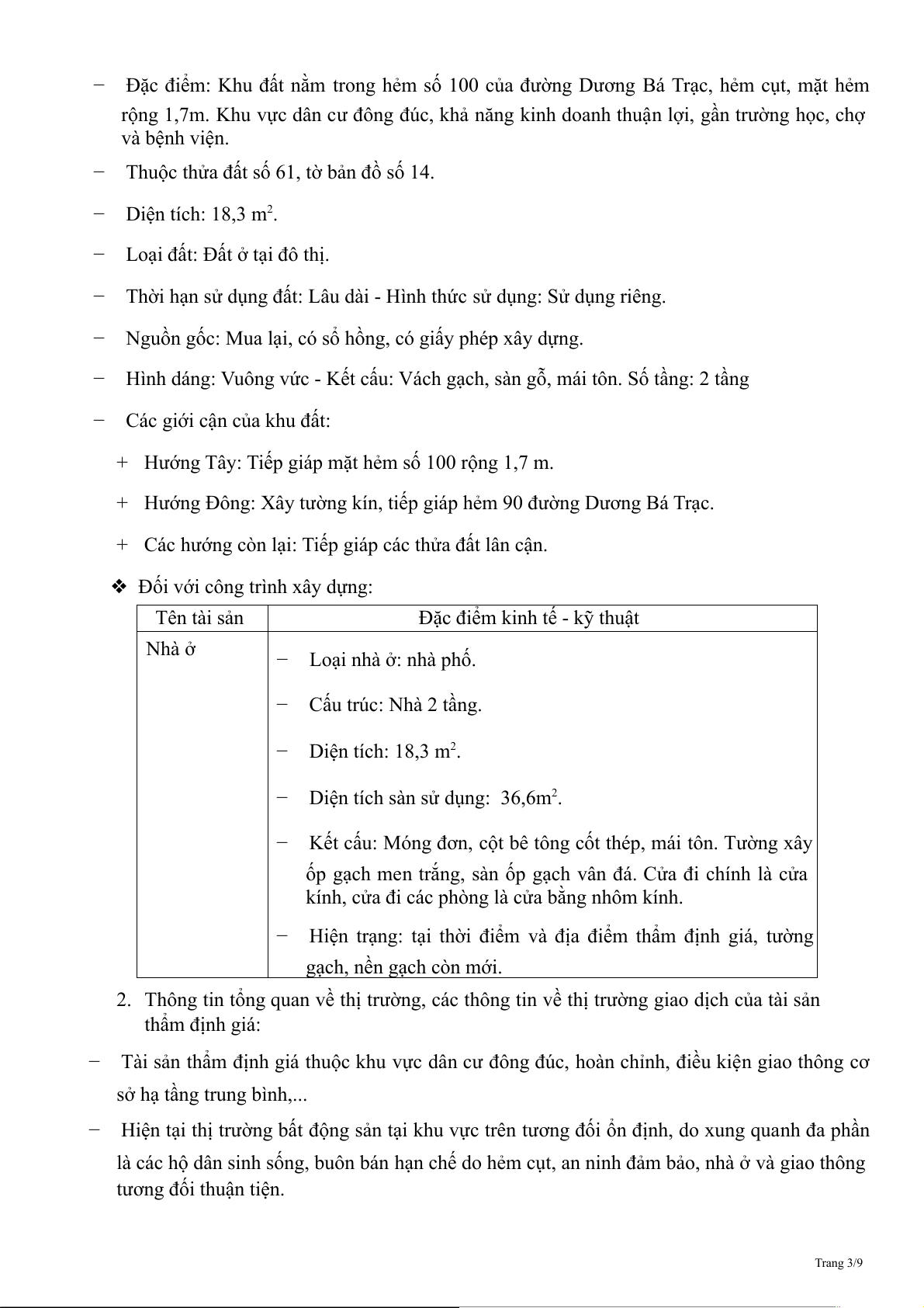 là các hộ dân sinh sống, buôn bán hạn chế do hẻm cụt, an ninh đảm bảo, nhà ở và giao thông tương đối thuận tiện. Trang 3/9