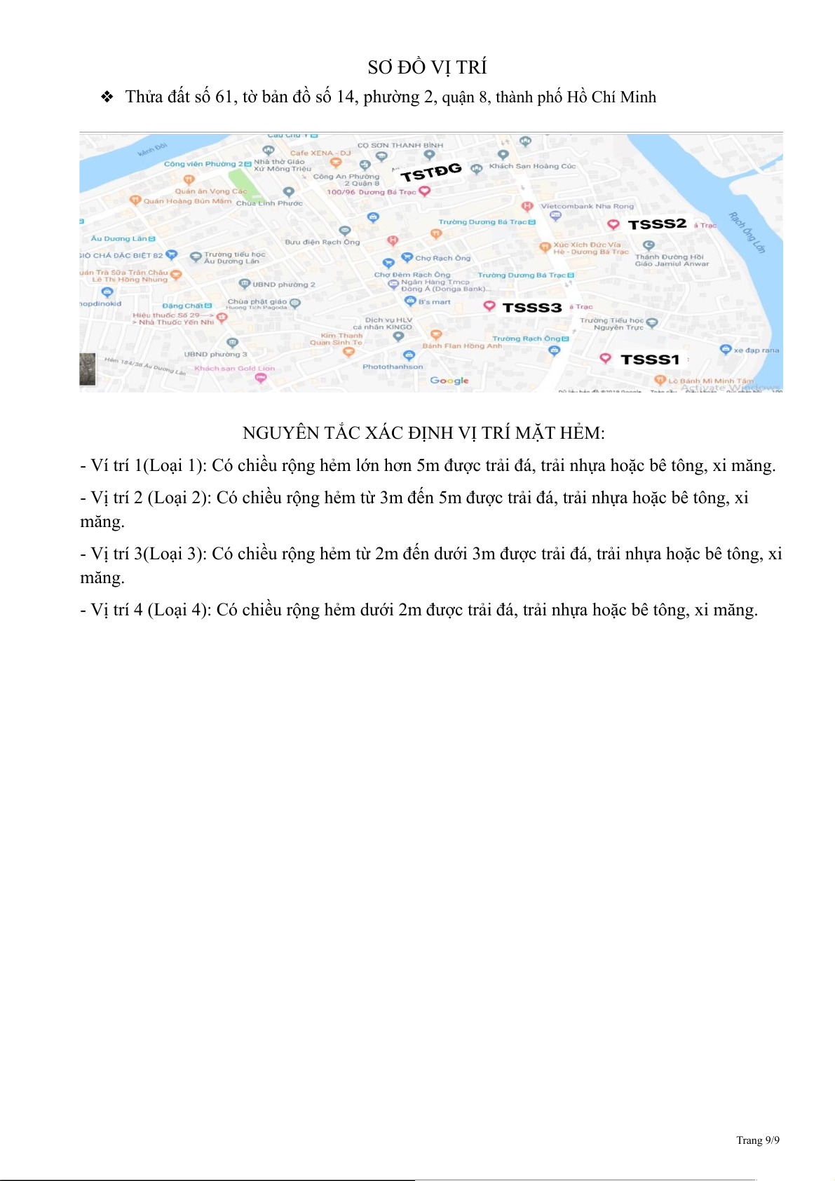 - Vị trí 4 (Loại 4): Có chiều rộng hẻm dưới 2m được trải đá, trải nhựa hoặc bê tông, xi măng. Trang 9/9