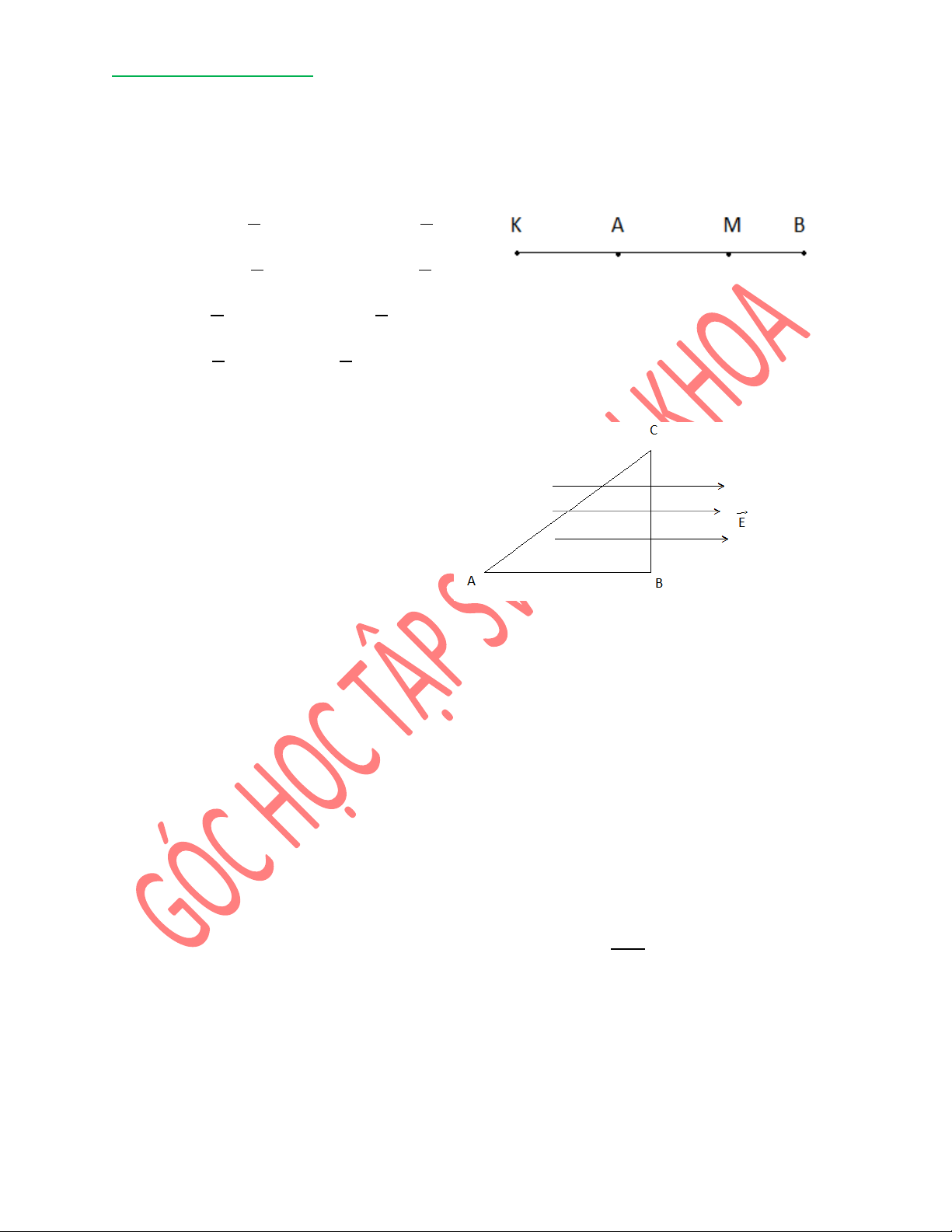 Câu 13: Tâm giác vuông ABC có 𝐴𝐵 = 30cm, 𝐵𝐶 = 40cm, 𝐴𝐶 = 50cm đặt trong điện trường