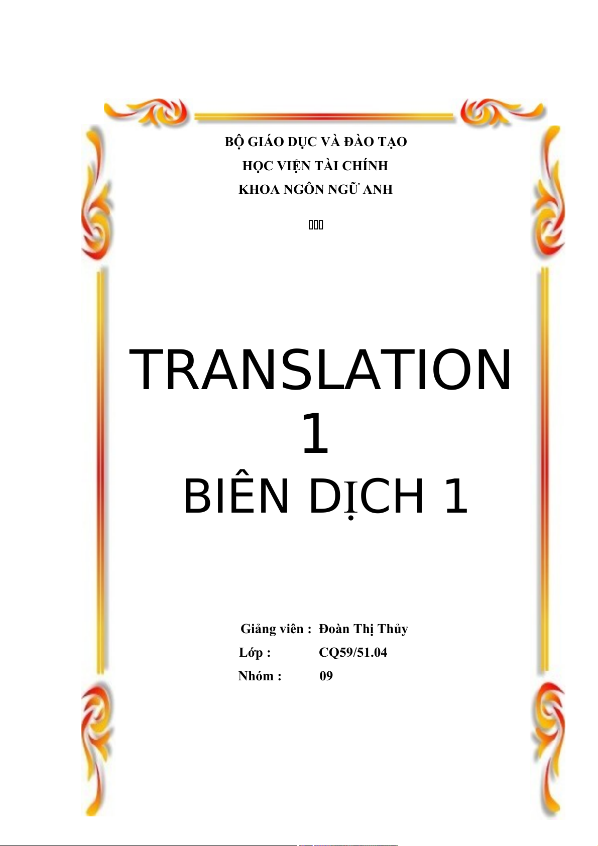 HỌC VIỆN TI CHÍNH KHOA NGÔN NGỮ ANH TRANSLATION 1 BIÊN DỊCH 1