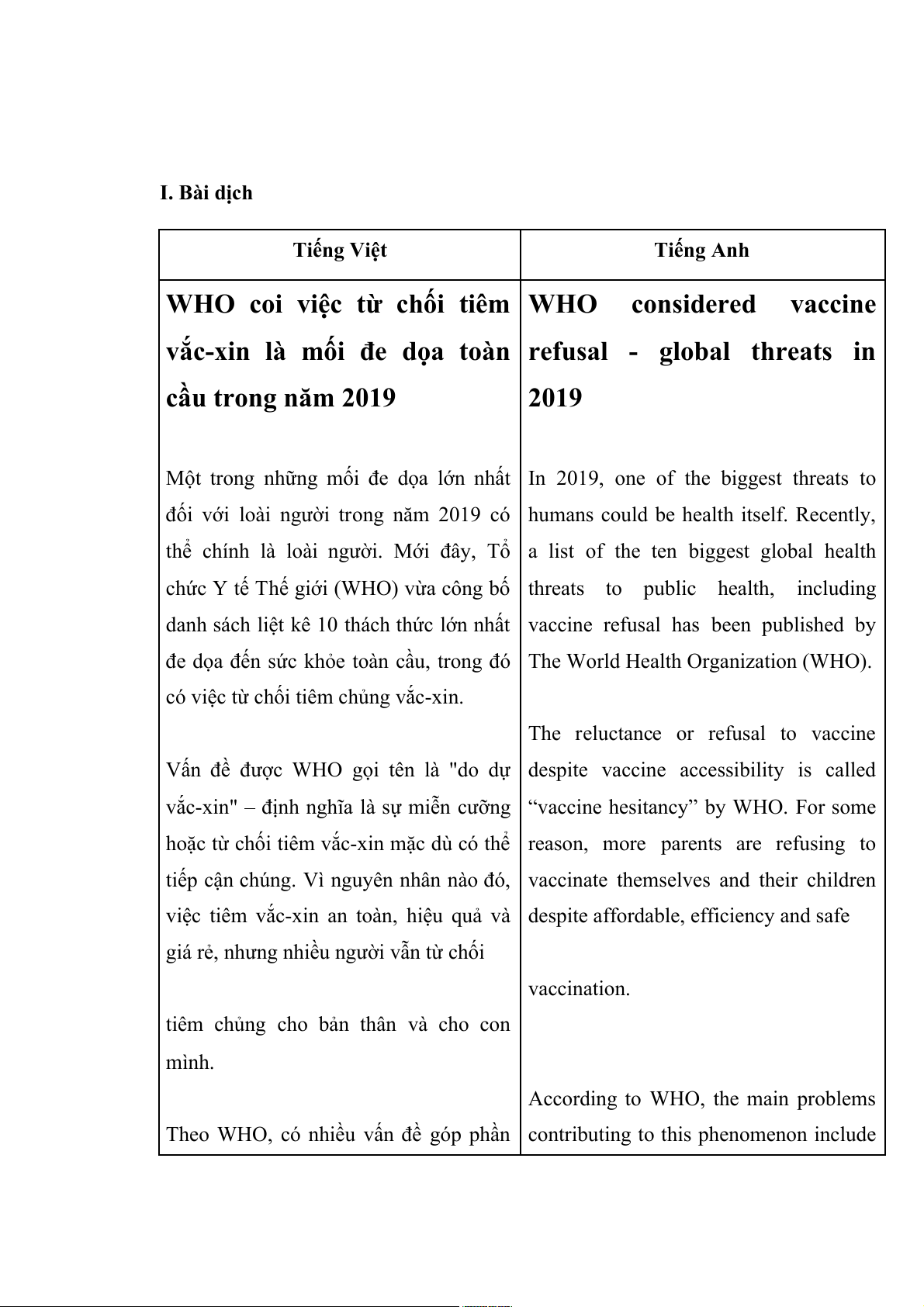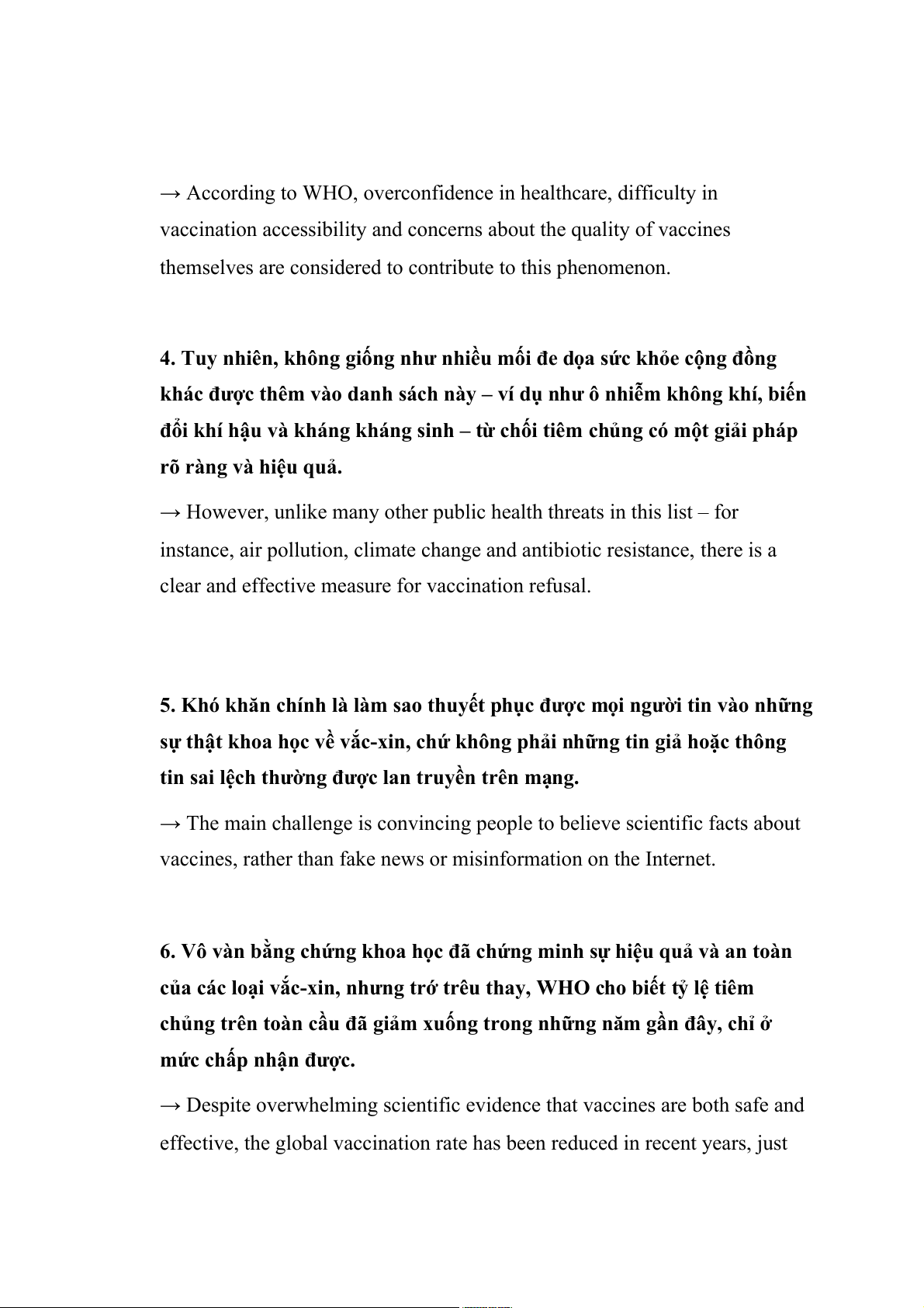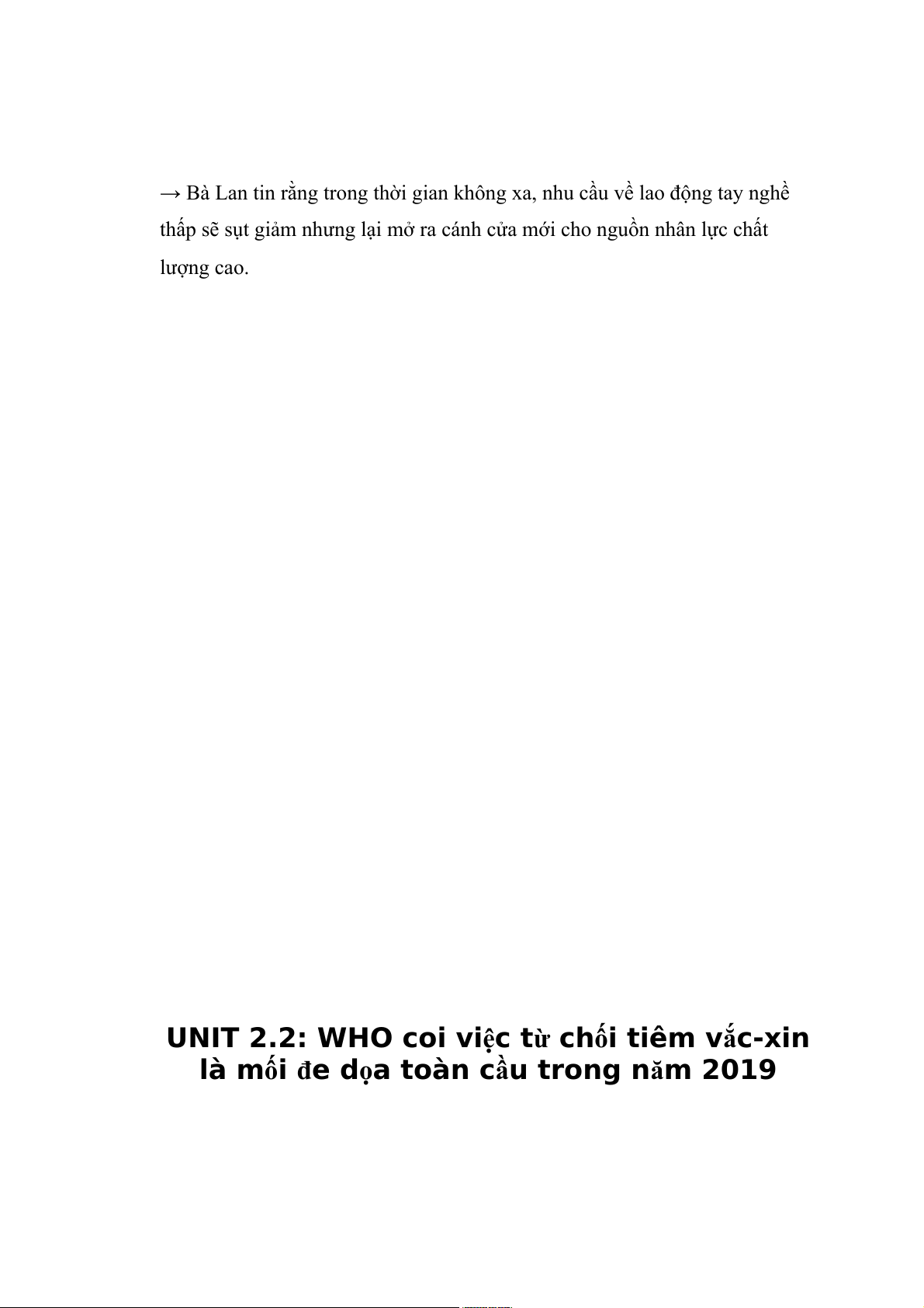 Unit 2.2: WHO coi việc từ chối tiêm vắc-xin là mối đe dọa toàn