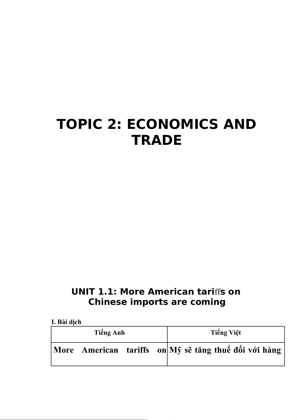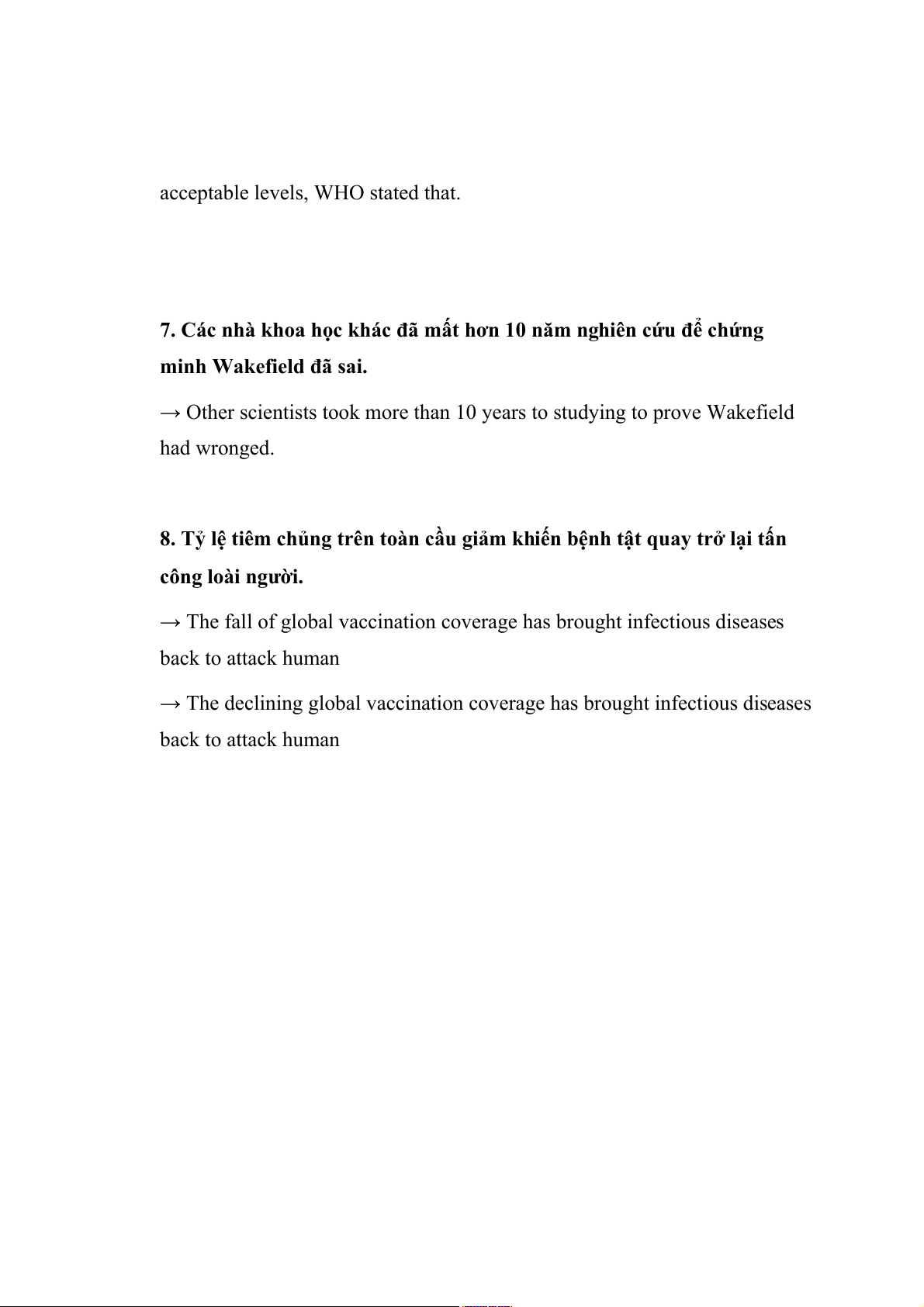 → The declining global vaccination coverage has brought infectious diseases back to attack human TOPIC 2: ECONOMICS AND TRADE