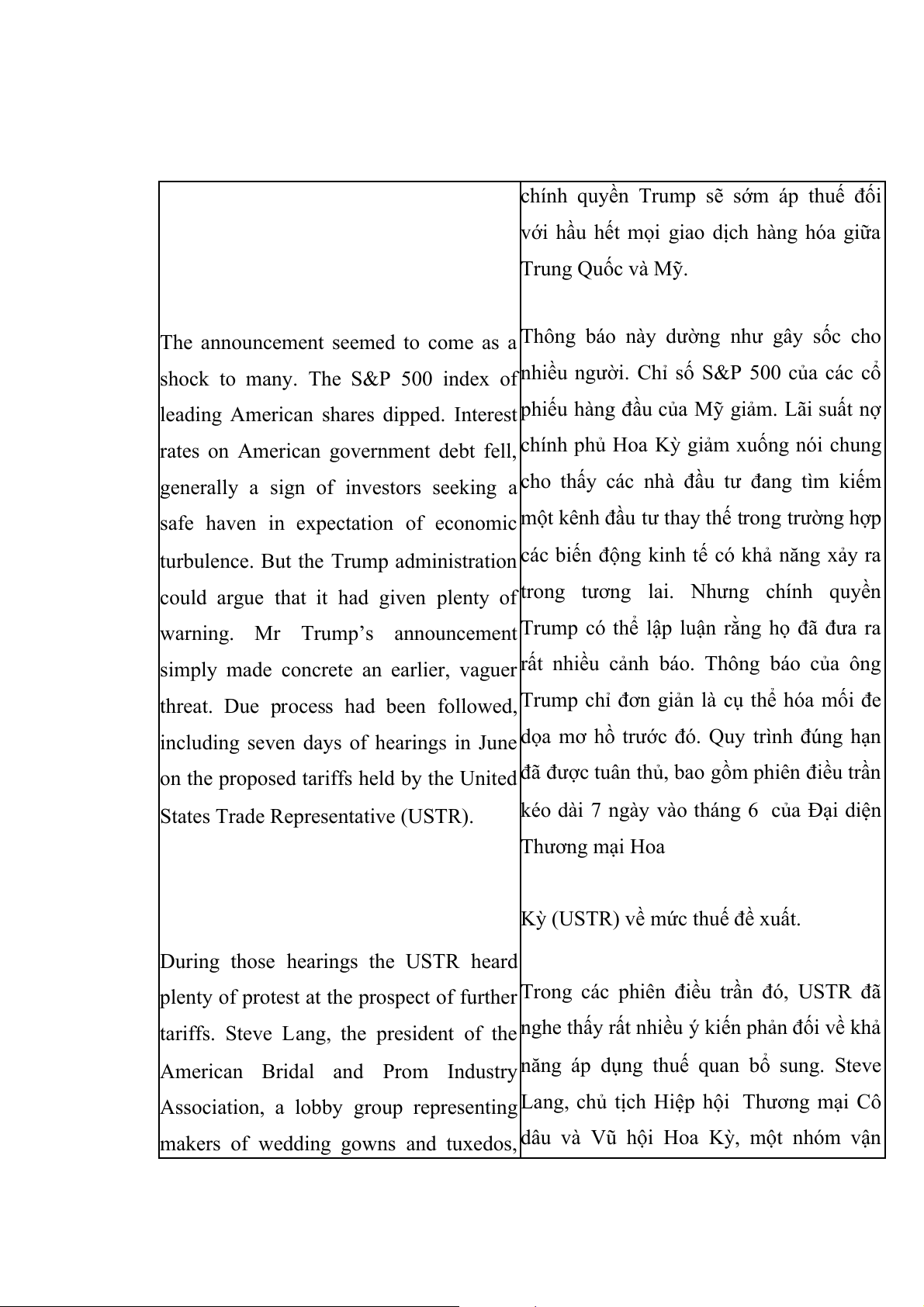tariffs. Steve Lang, the president of the nghe thấy rất nhiều ý kiến phản đối về khả