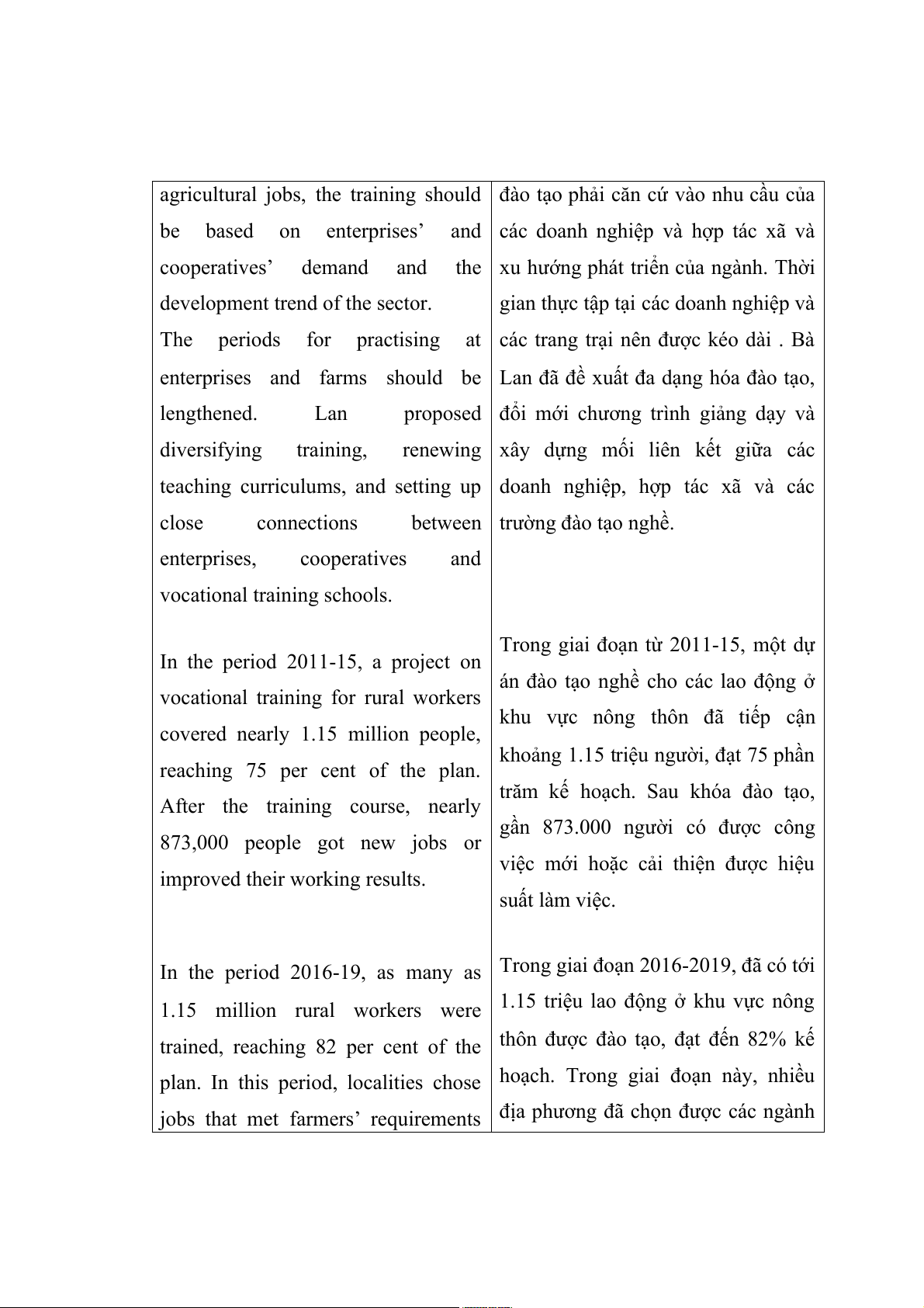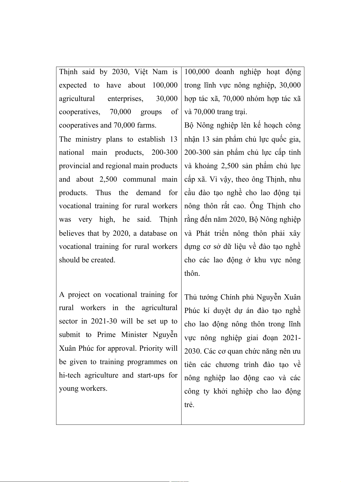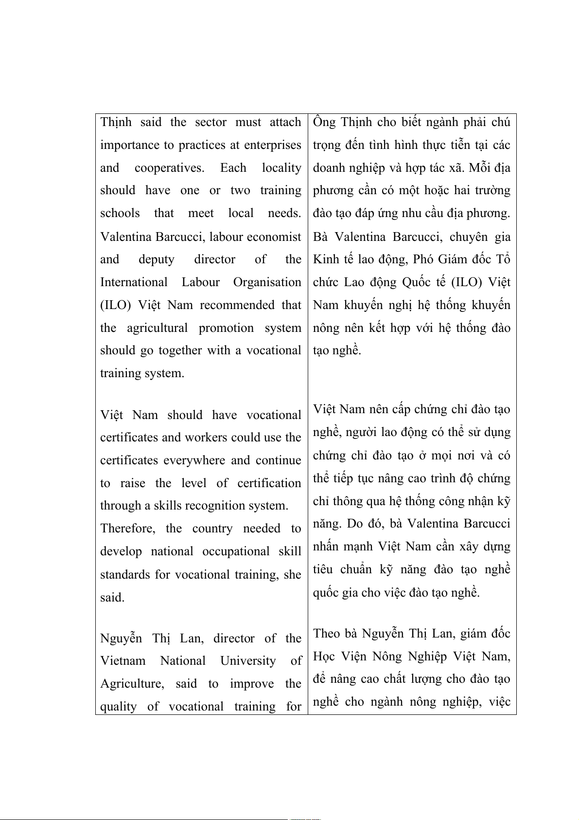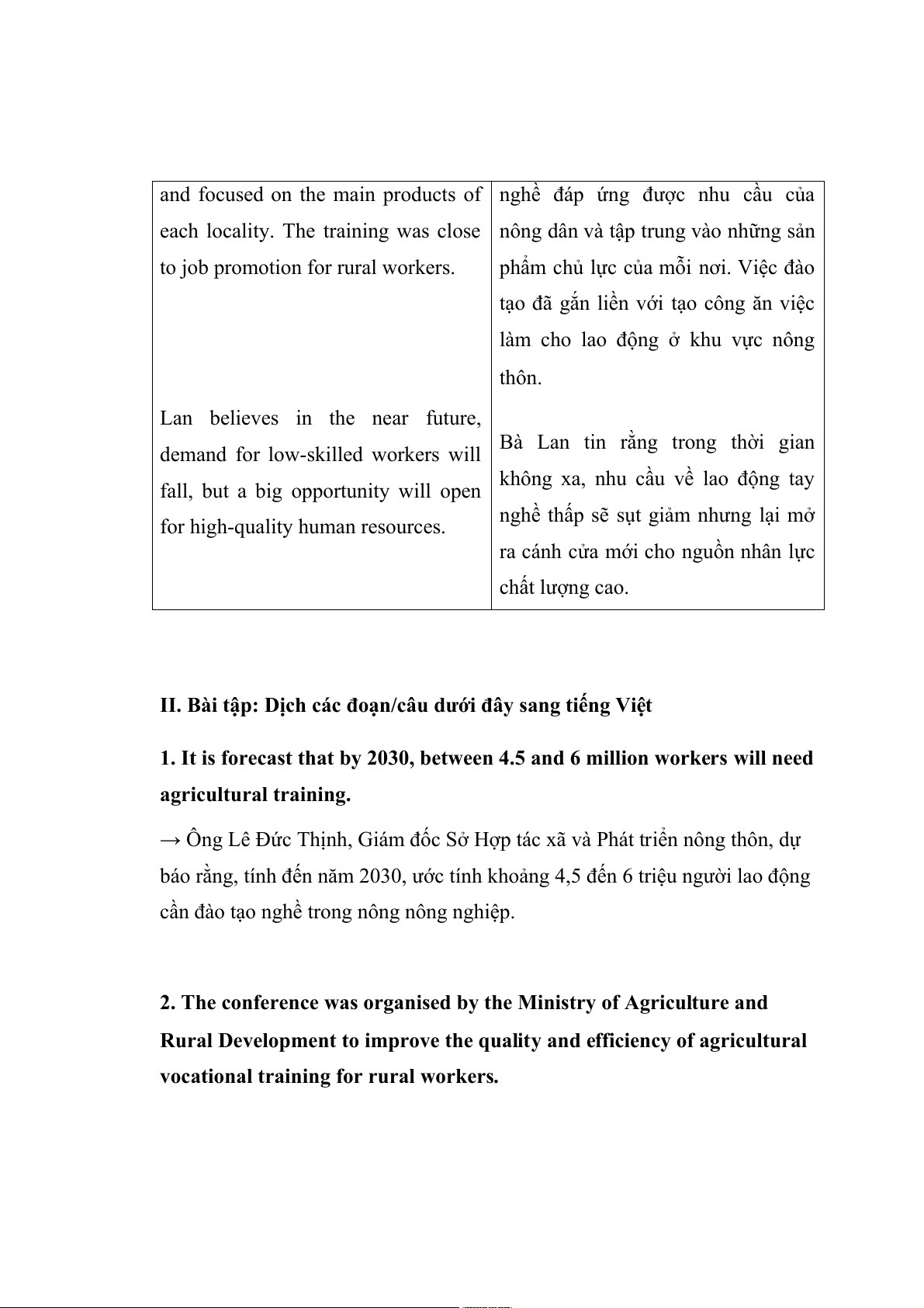 agricultural vocational training I. Bài dịch Tiếng Anh Tiếng Việt