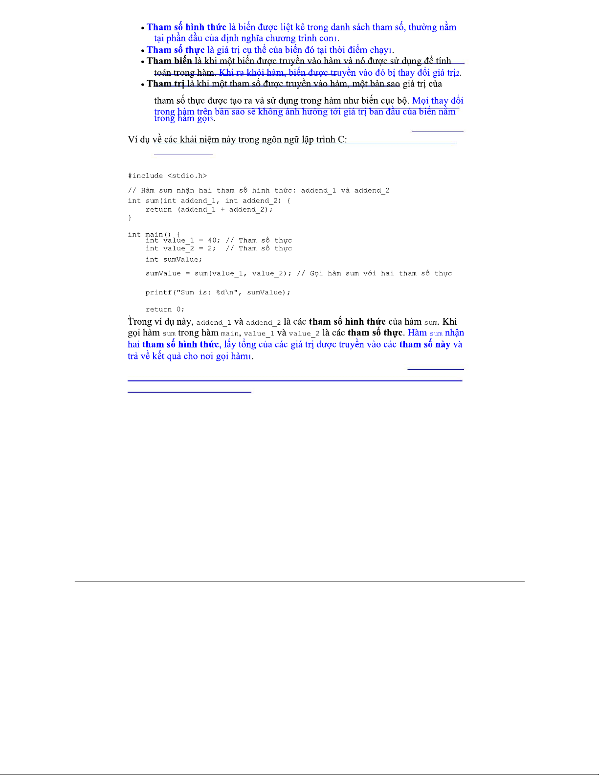 Tham số hình thức và tham số thực trong ngôn ngữ lập trình C