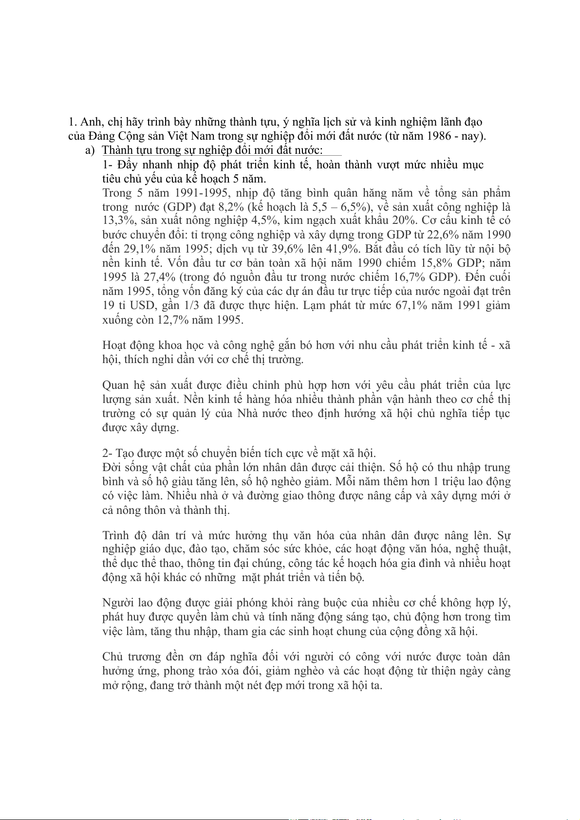 của Đảng Cộng sản Việt Nam trong sự nghiệp đổi mới đất nước (từ năm 1986 - nay). a)