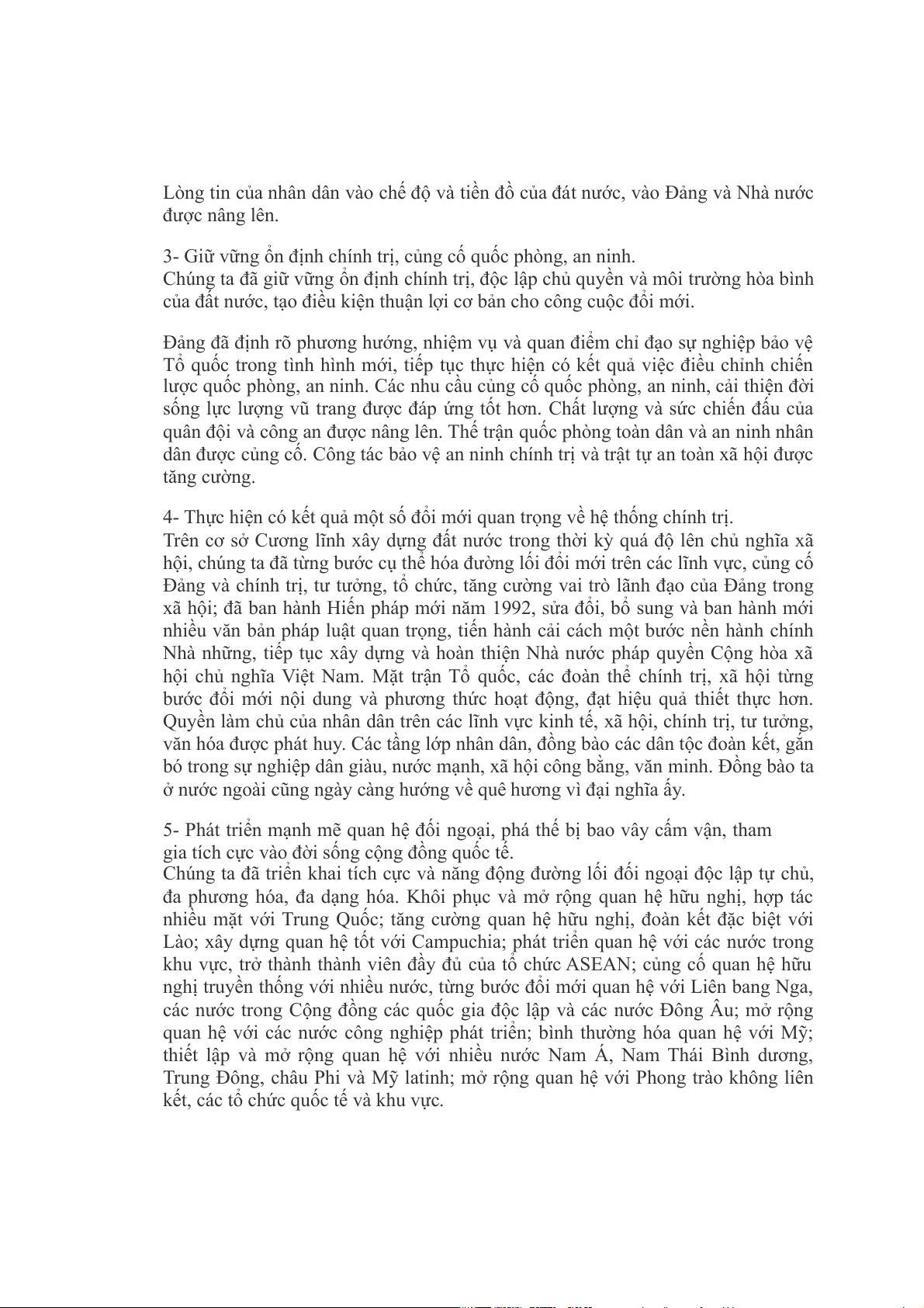 Lòng tin của nhân dân vào chế độ và tiền đồ của đát nước, vào Đảng và Nhà nước được nâng lên.