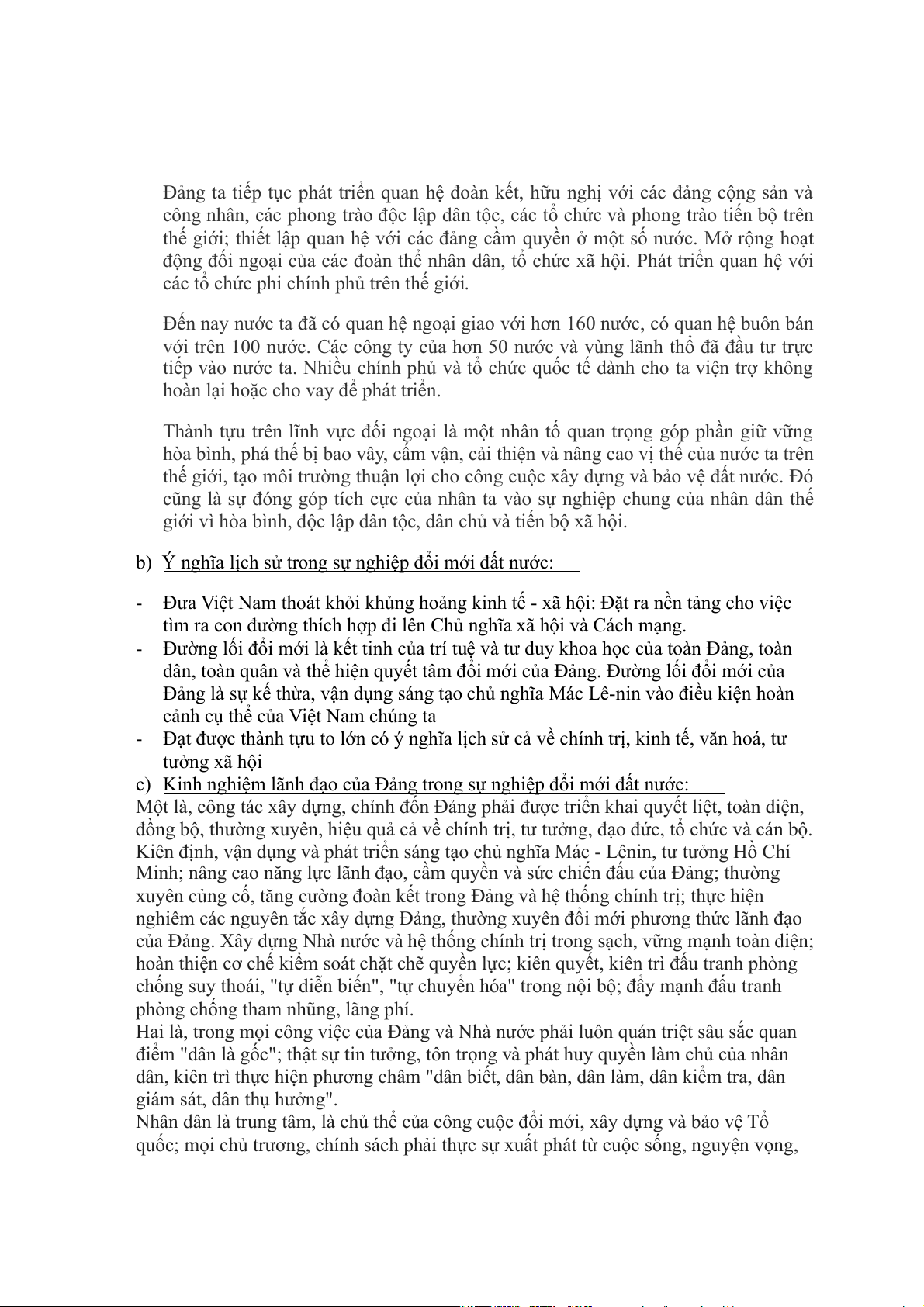 c) Kinh nghiệm lãnh đạo của Đảng trong sự nghiệp đổi mới đất nước: