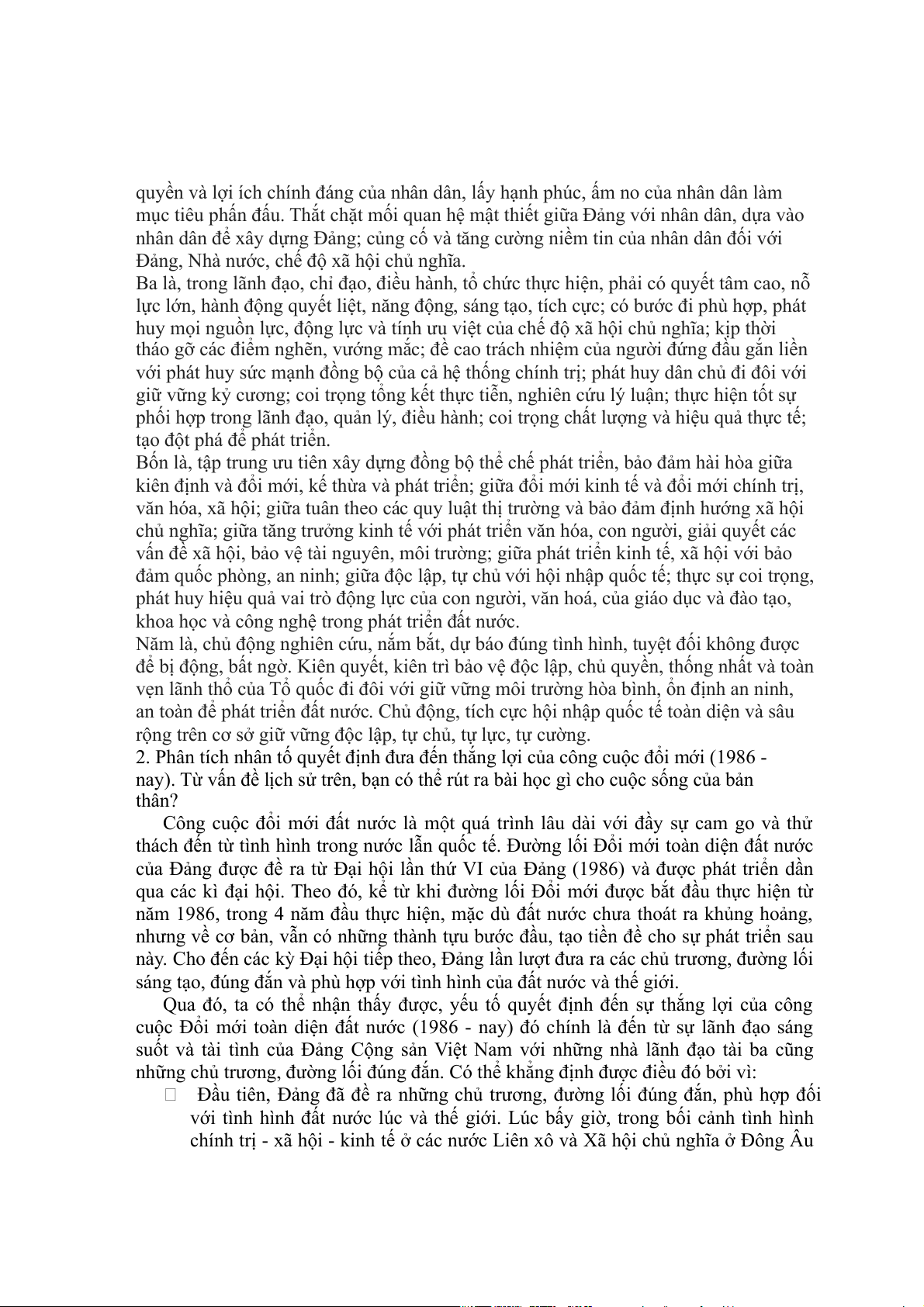 2. Phân tích nhân tố quyết định đưa đến thắng lợi của công cuộc đổi mới (1986 -