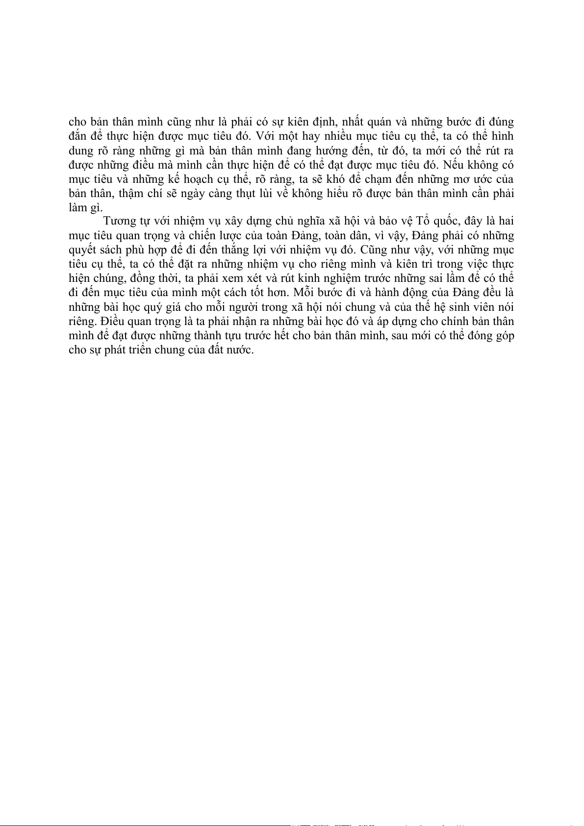 mỗi sinh viên ngày nay có thể rút ra được đó chính là phải biết đặt ra mục tiêu chiến lược