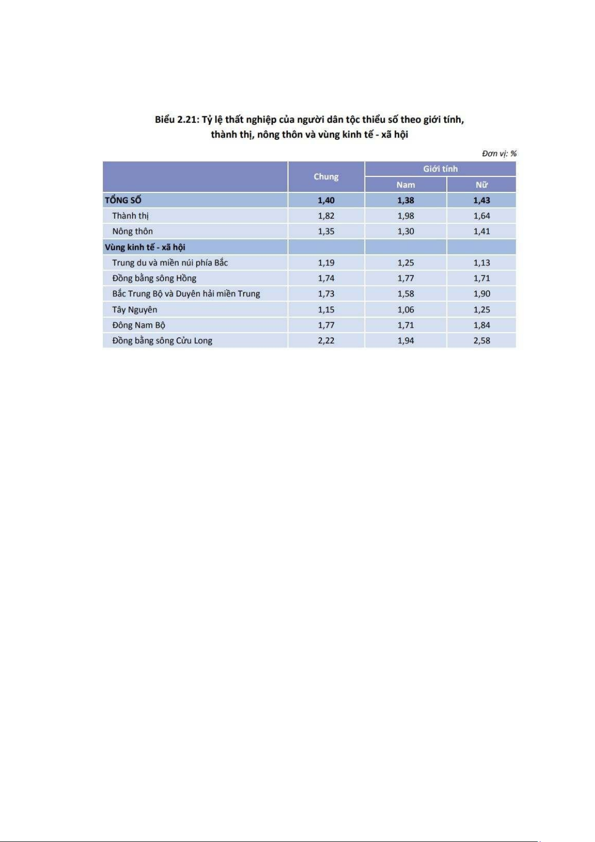 dưới 2%, đặc biệt dân tộc Lự và Rơ Măm có tỷ lệ thất nghiệp được ghi nhận bằng không.