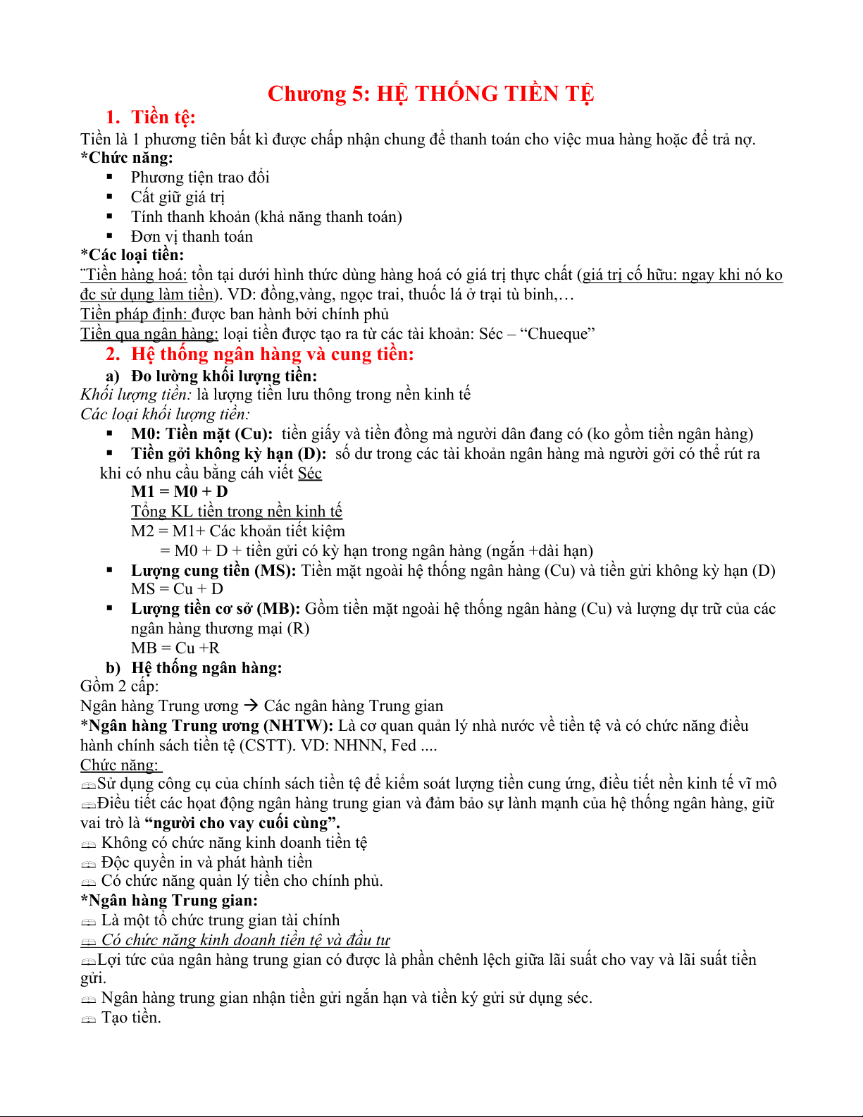 Chương 5: HỆ THỐNG TIỀN TỆ 1. Tiền tệ: