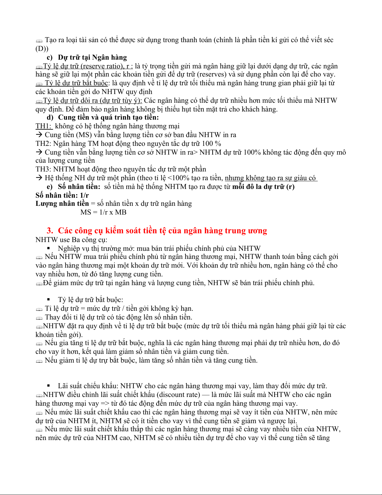 dự trữ của NHTM ít, NHTM sẽ có ít tiền cho vay vì thế cung tiền sẽ giảm và ngược lại.