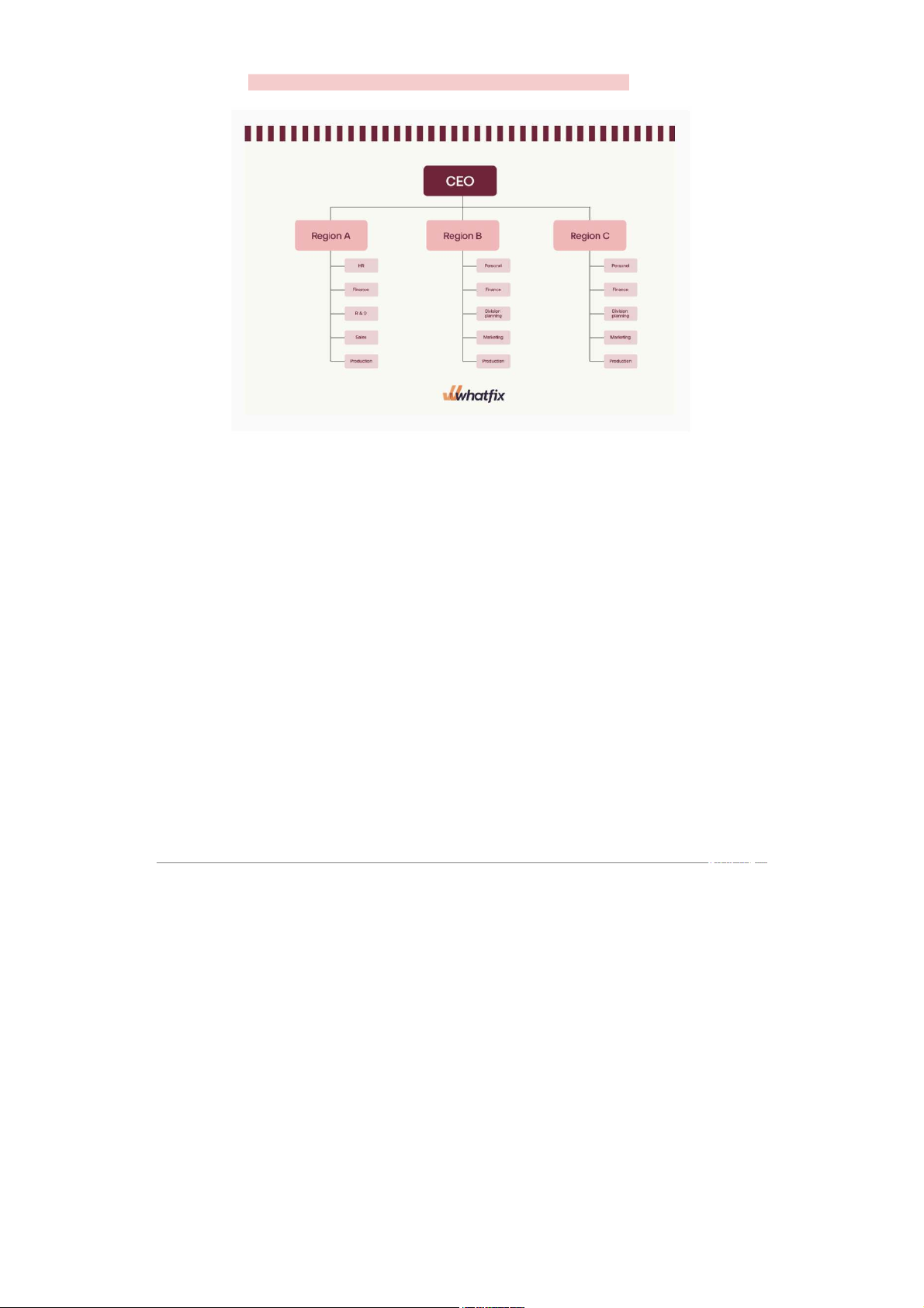 Grouping by region or - Better customer - Duplication of functions Coca-Cola divides territory service across regions. operations into - Focus on local regional divisions markets North America, Europe, Asia-Pacific to adapt marketing and logistics to local tastes 3. Reporting Relationships