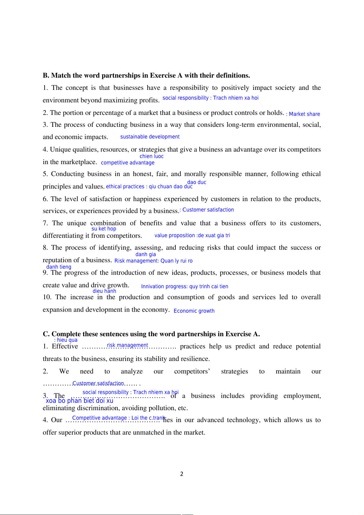 C. Complete these sentences using the word partnerships in Exercise A. : hieu qua