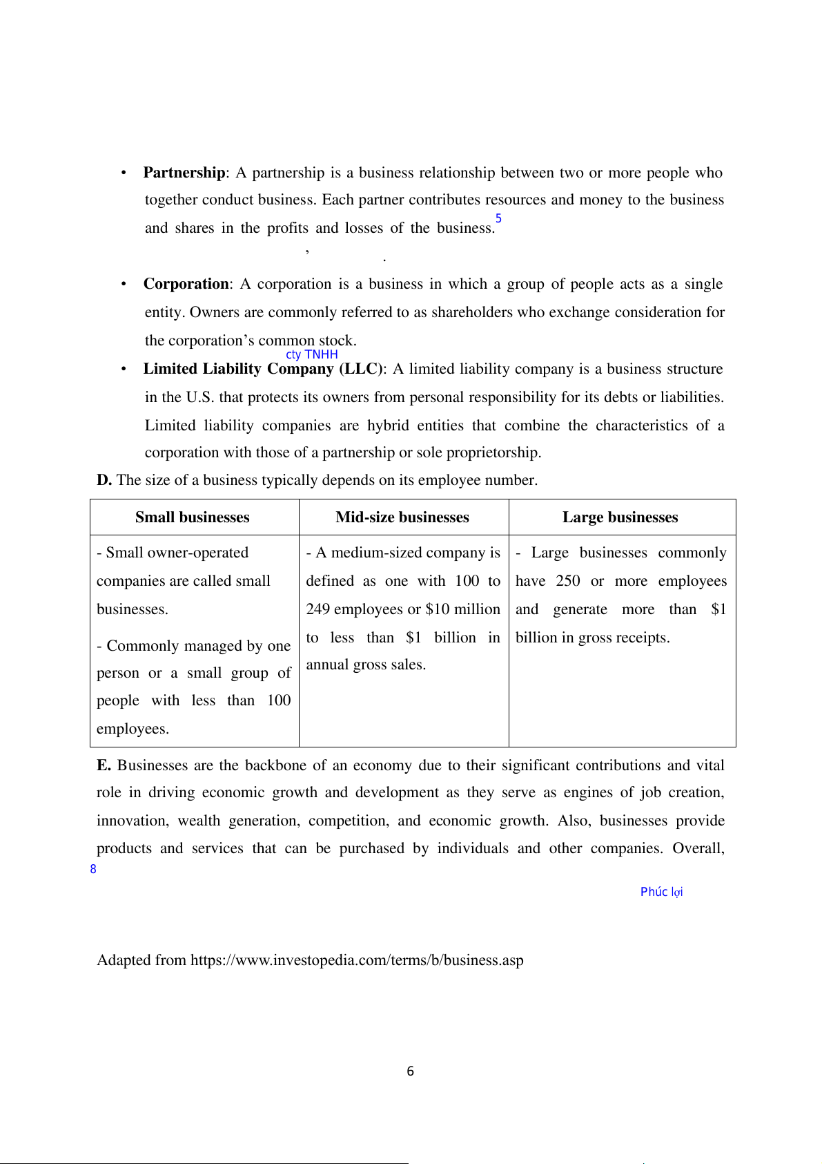 Adapted from https://www.investopedia.com/terms/b/business.asp 6