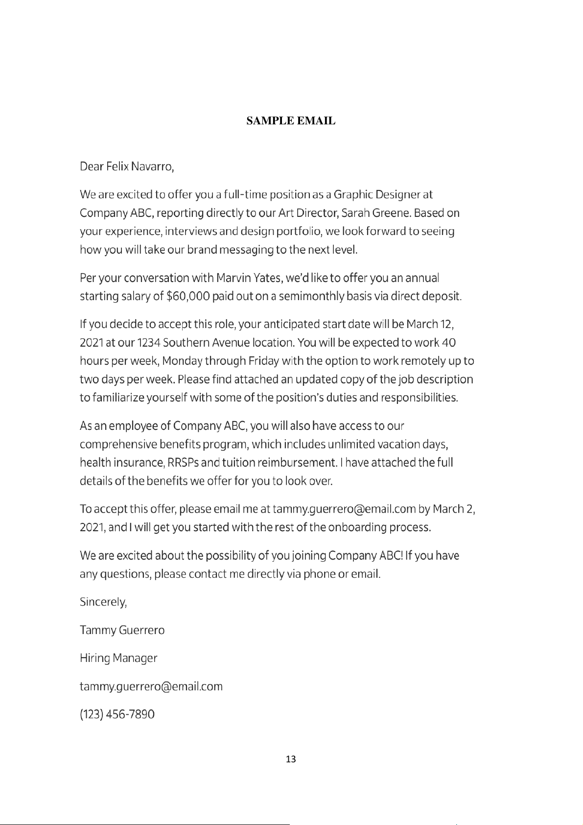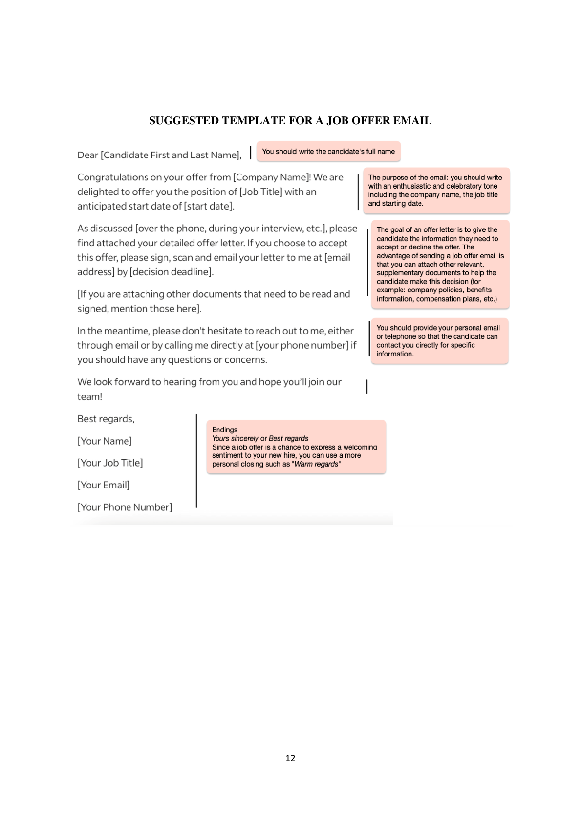 employers choose to use a job offer email template to ensure consistency across the organization. 11