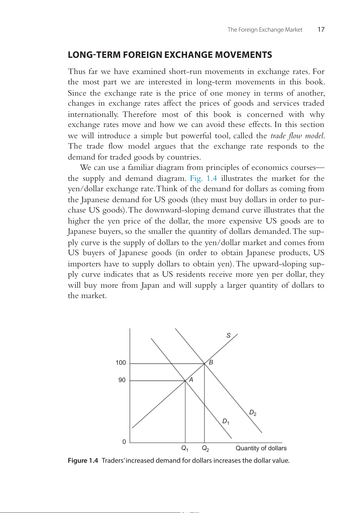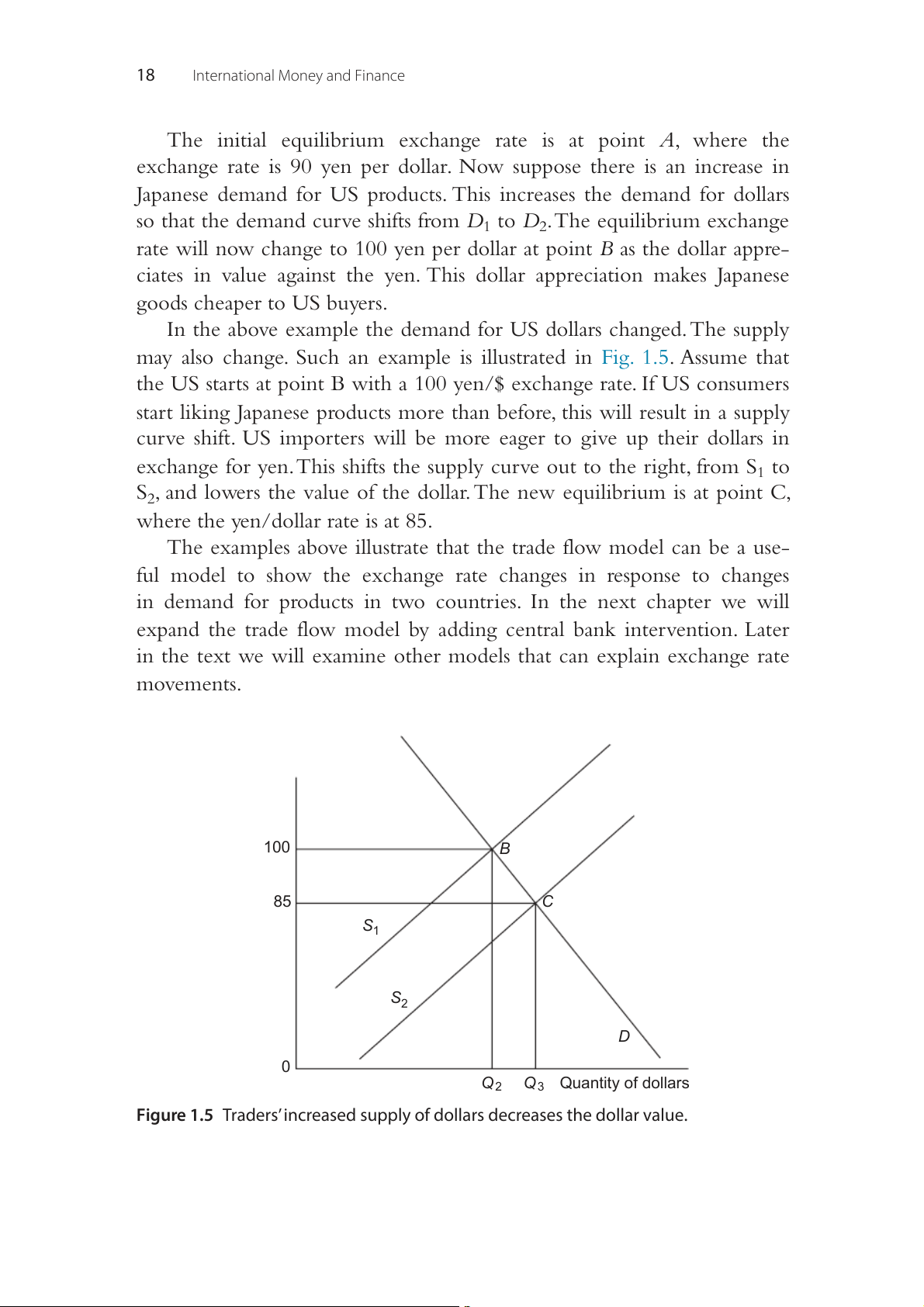 Figure 1.5 Traders’ increased supply of dollars decreases the dollar value. The Foreign Exchange Market 19 SUMMARY