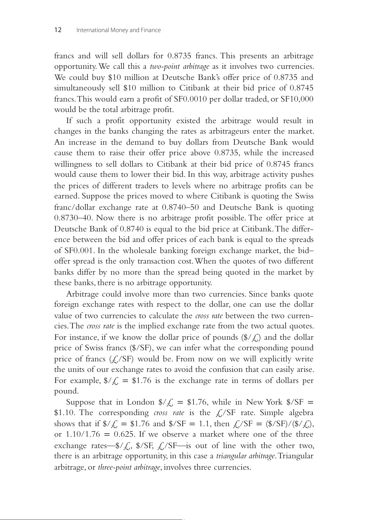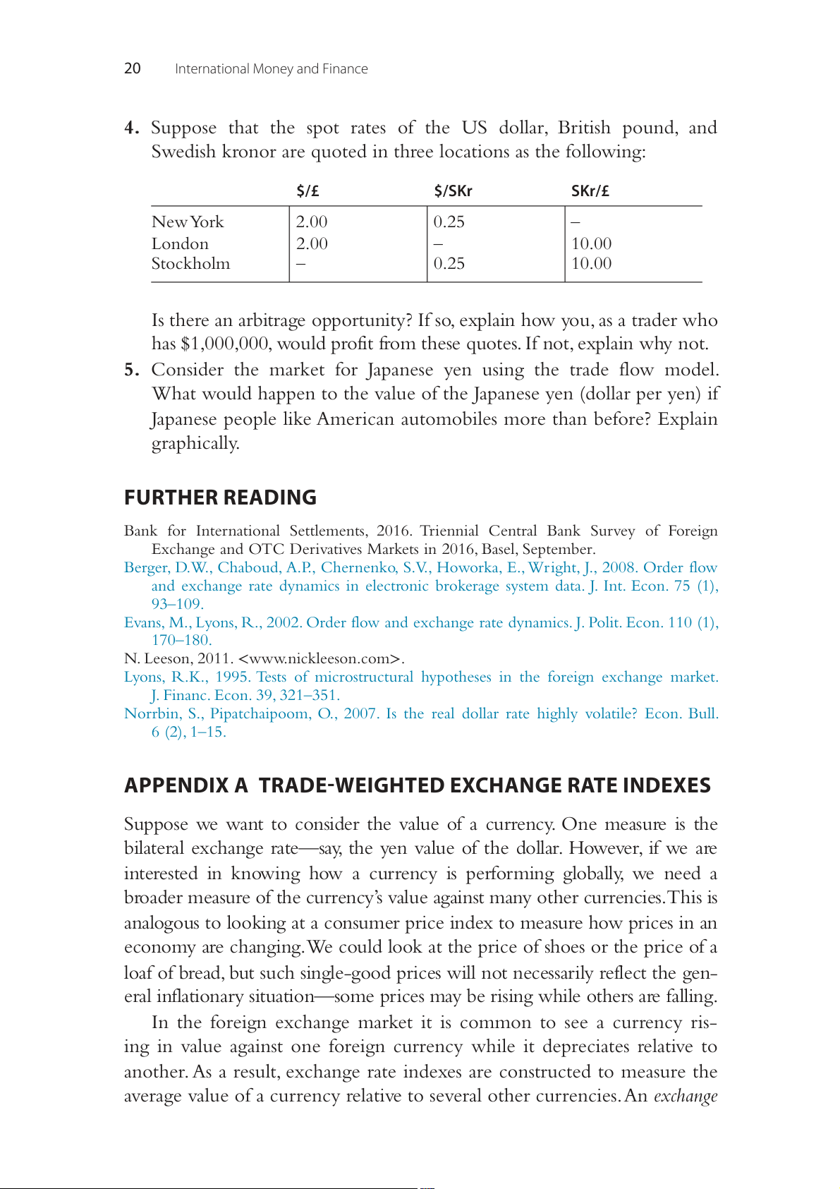 Swedish kronor are quoted in three locations as the following: $/£ $/SKr SKr/£ New York 2.00 0.25 – London 2.00 – 10.00 Stockholm – 0.25 10.00