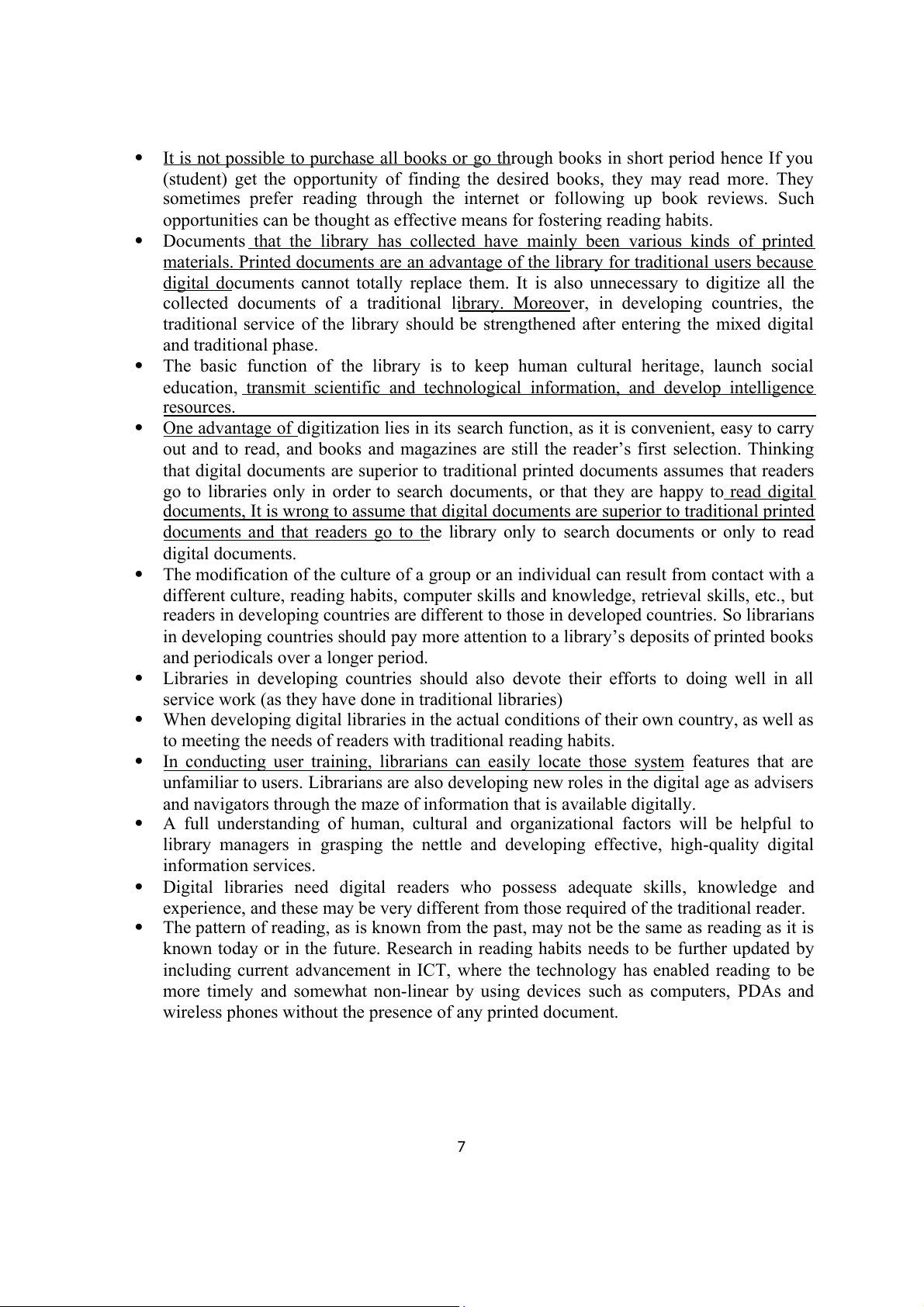collects printed materials only. As for library users, their reading habits and ideas of utilizing