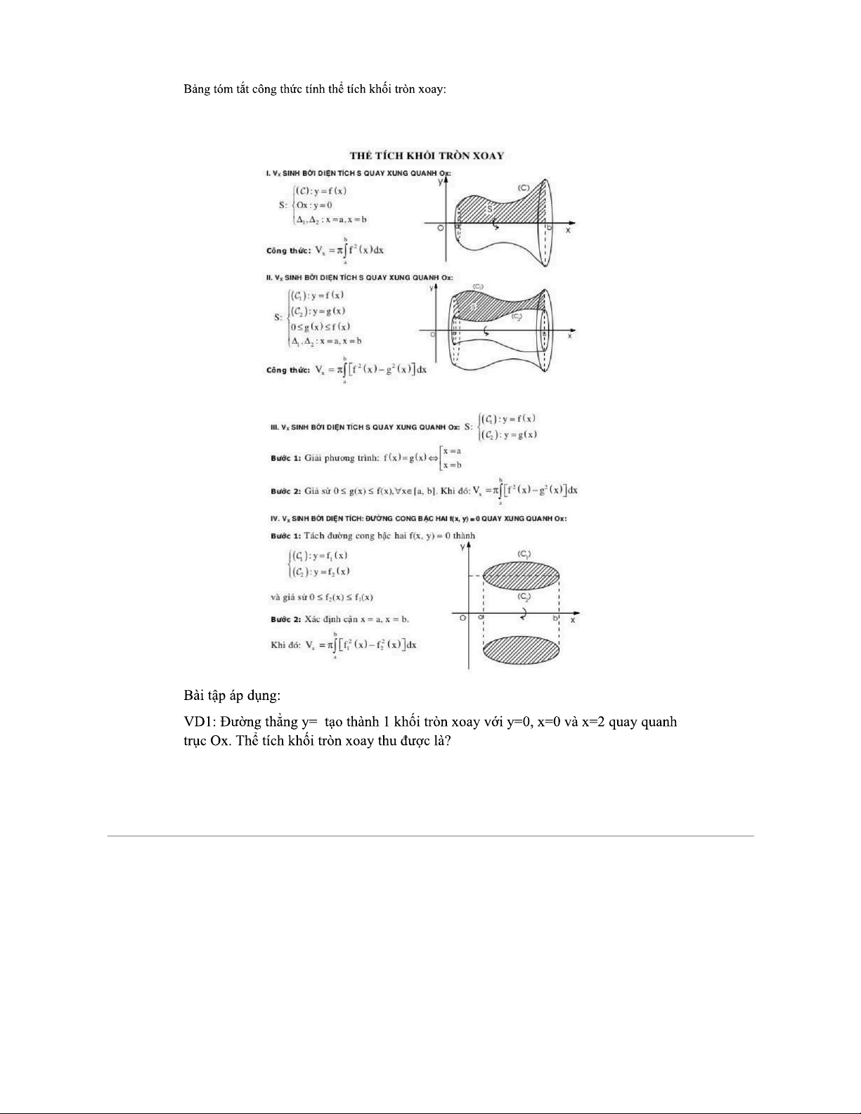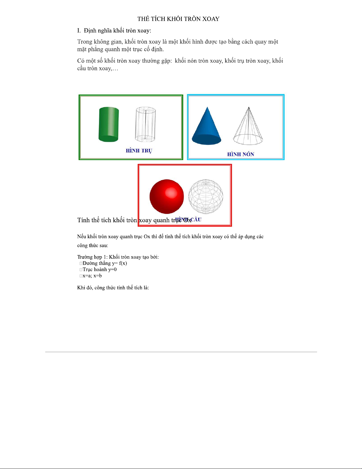THỂ TÍCH KHỐI TRÒN XOAY - CÁC CÔNG THỨC TÍNH TỔNG QUAN