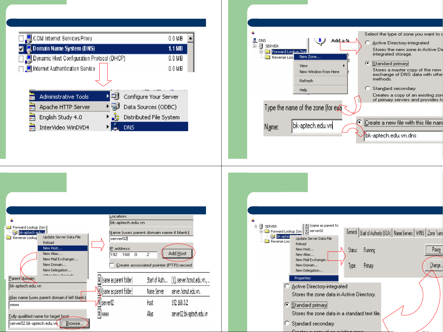 Standard zones(Mạng ngang hàng) Change Primary zone(Zone chính) Secondary zone (Zone dự phòng) Primary Secondary Zone Zone @Bách Khoa Aptech 2004 Trang 31 @Bách Khoa Aptech 2004 Trang 32