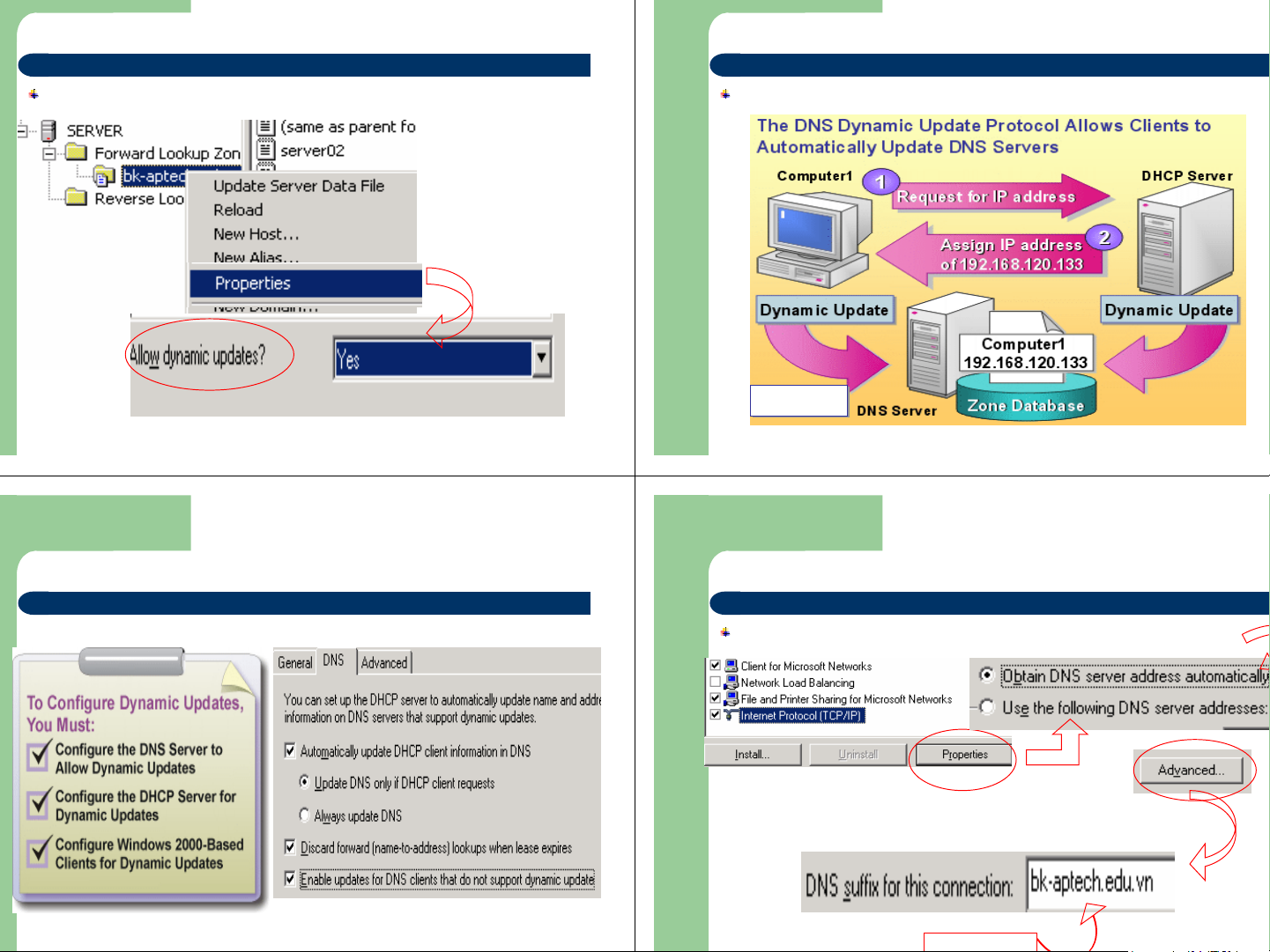 Windows 2000 hỗ trợ DNS động(DDNS) cho phép Client cập nhật