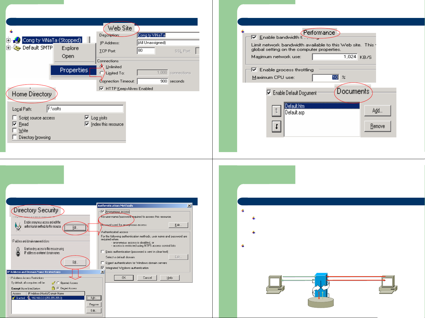 Virtual Directory : D:\thongbao Quyền truy xuất Security Account Granted Access : 192.168.0.64/255.255.255.224 @Bách Khoa Aptech 2004 Trang 71 @Bách Khoa Aptech 2004 Trang 72