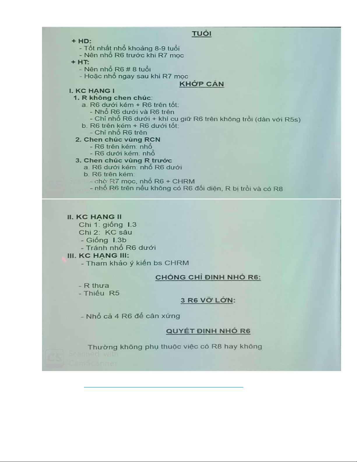 Chen chúc R trước-> chờ R7 mọc, nhổ R6-> điều chỉnh R trước bằng CHRM Tương quan KC Hạng I Hạng II chi 1 Hạng II chi 2: cắn sâu Hạng III