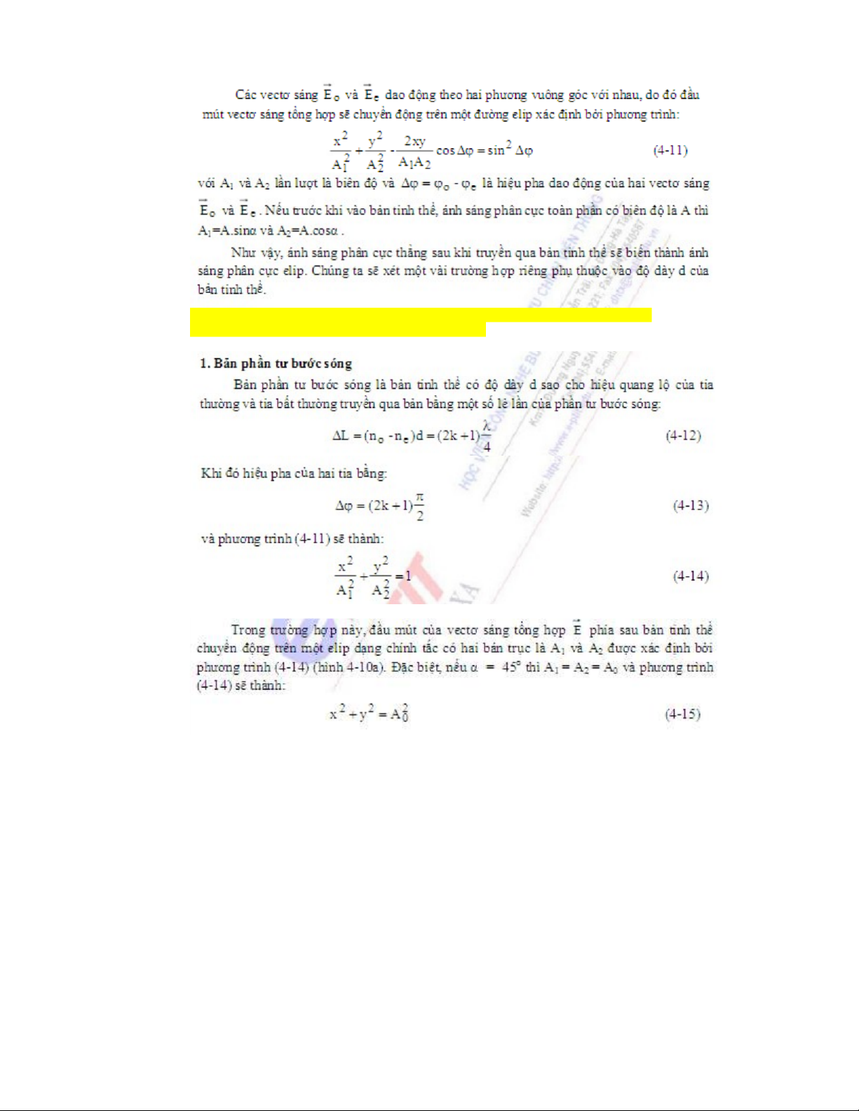 tơ điện trường nằm trong mặt phẳng đó sẽ truyền qua bản tinh thể, còn ánh sáng có véc tơ